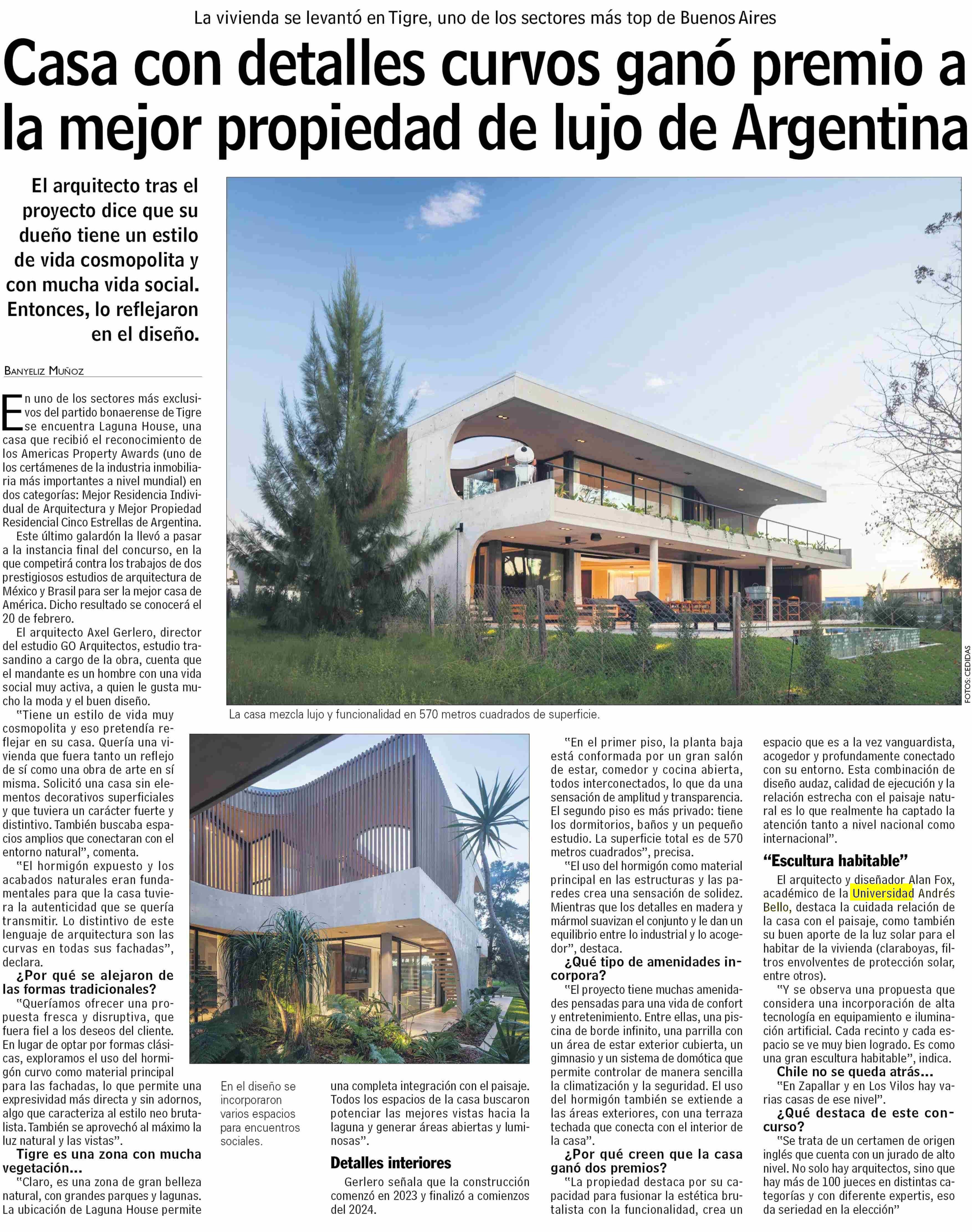 | Título: | Casa con detalles curvos ganó premio a la mejor propiedad de lujo de Argentina |