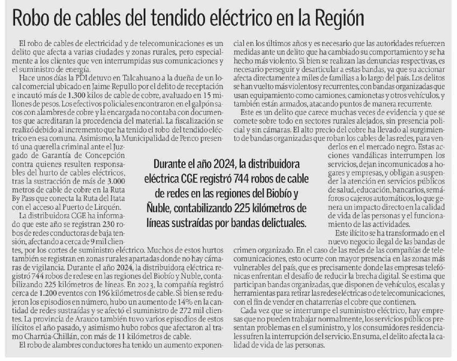 | Título: | Robo de cables del tendido eléctrico en la Región |