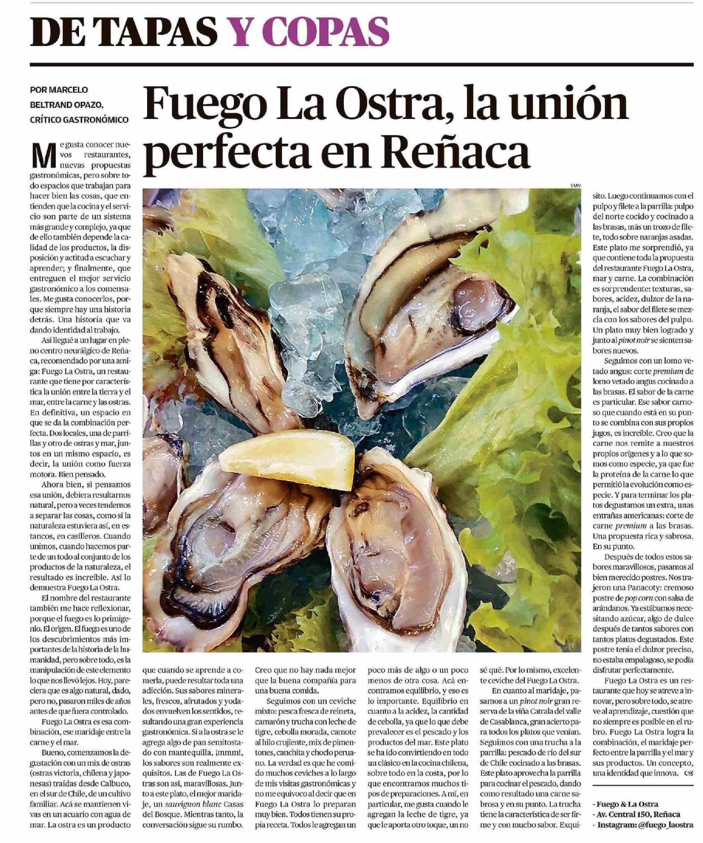 Título: Fuego La Ostra, la unión perfecta en Reñaca