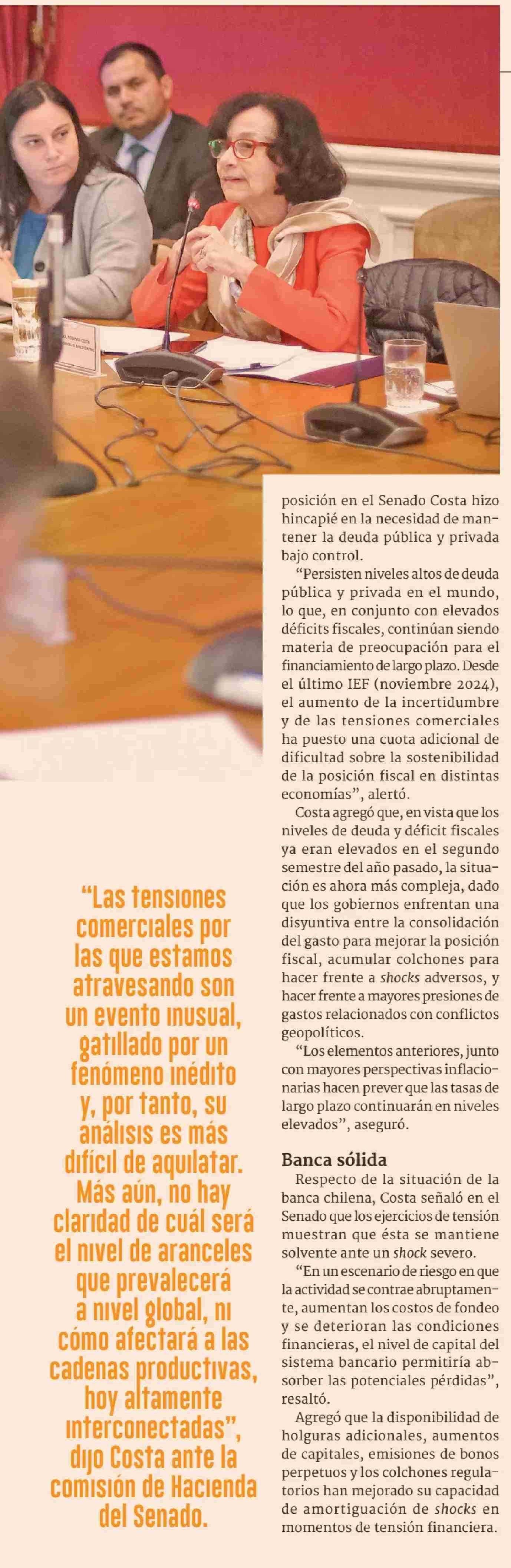 Banco Central afirma que la guerra comercial es la principal amenaza para la estabilidad financiera 20-05-2025 Diario Financiero |