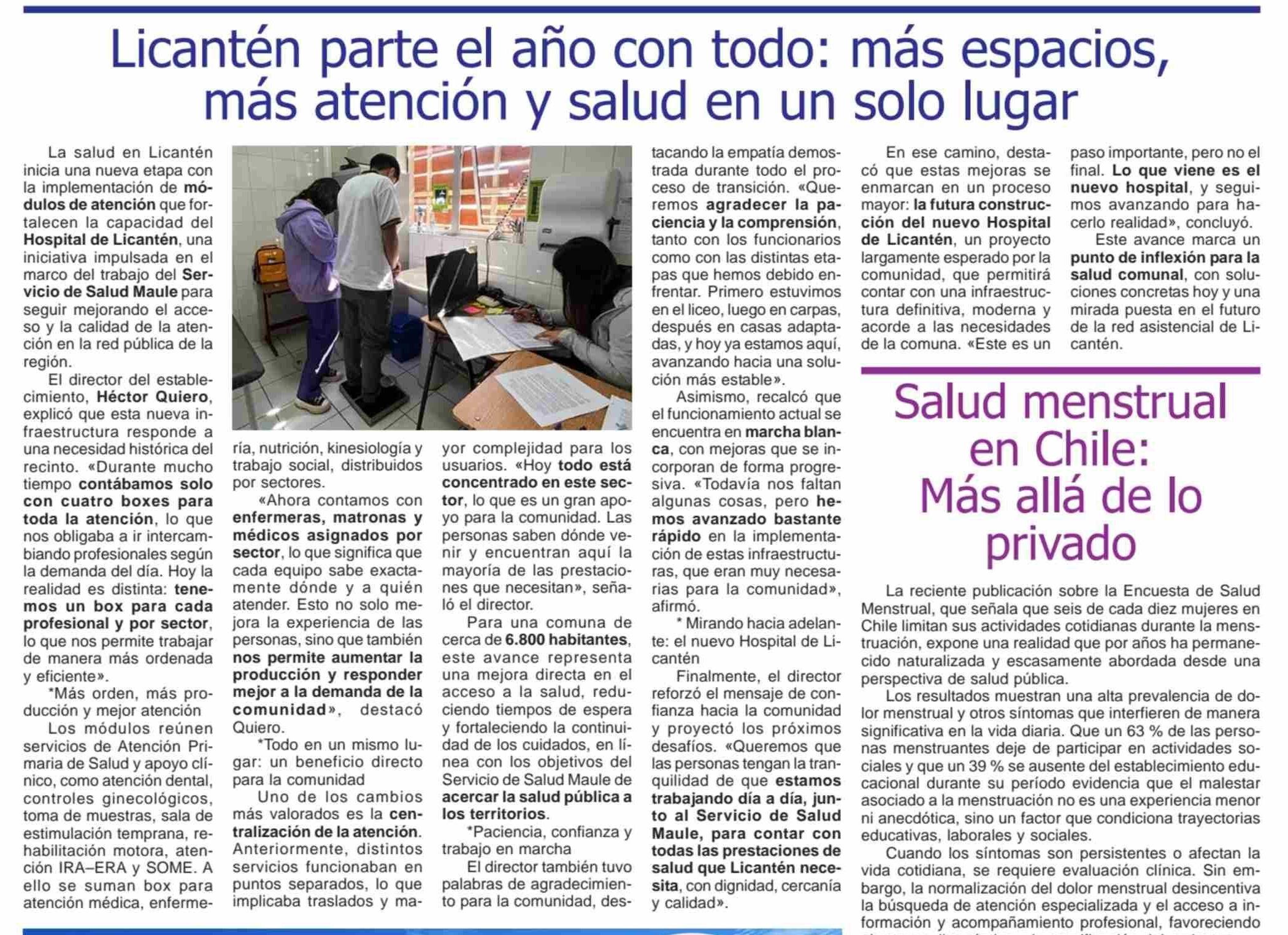 Licantén parte el año con todo: más espacios, más atención y salud en un solo lugar 10-01-2026 Maule Hoy |
