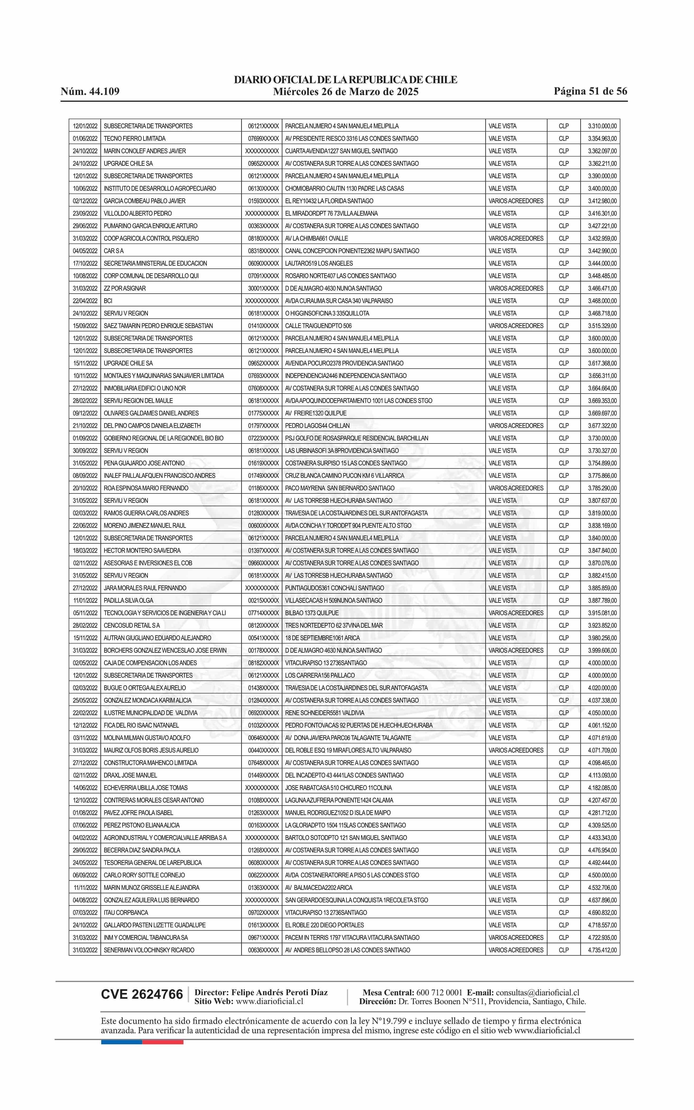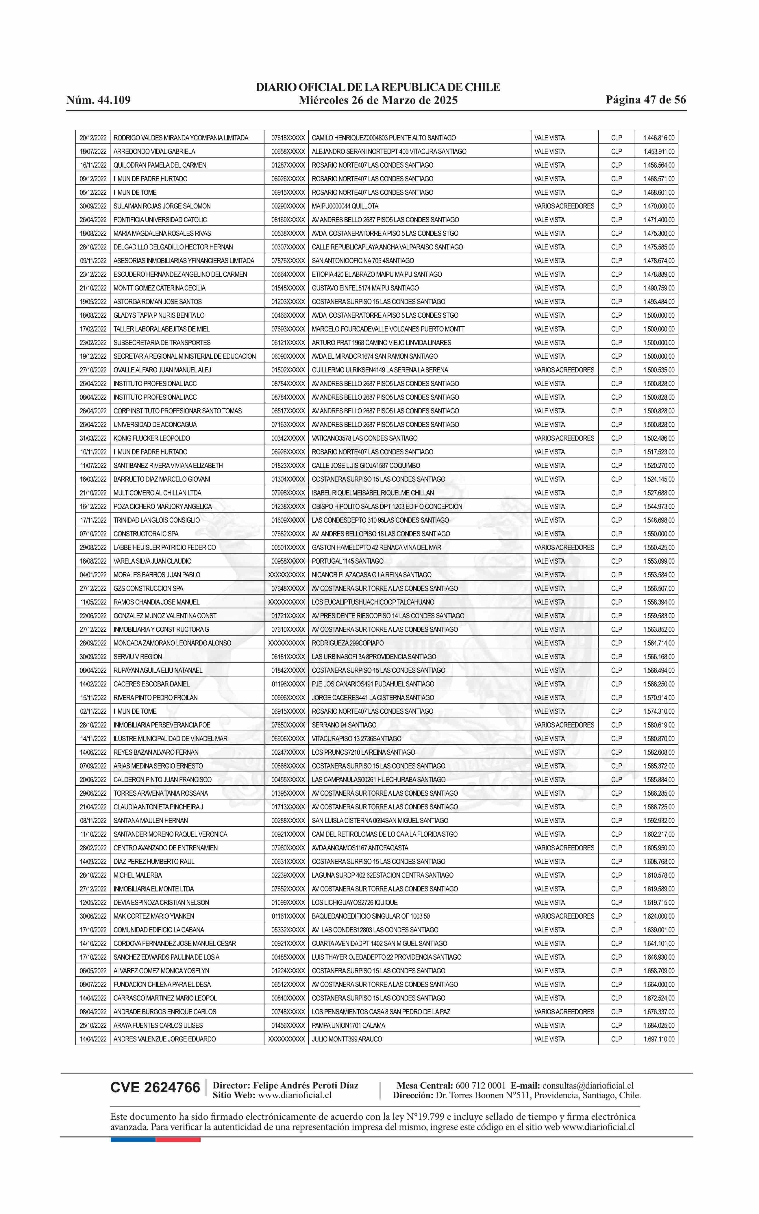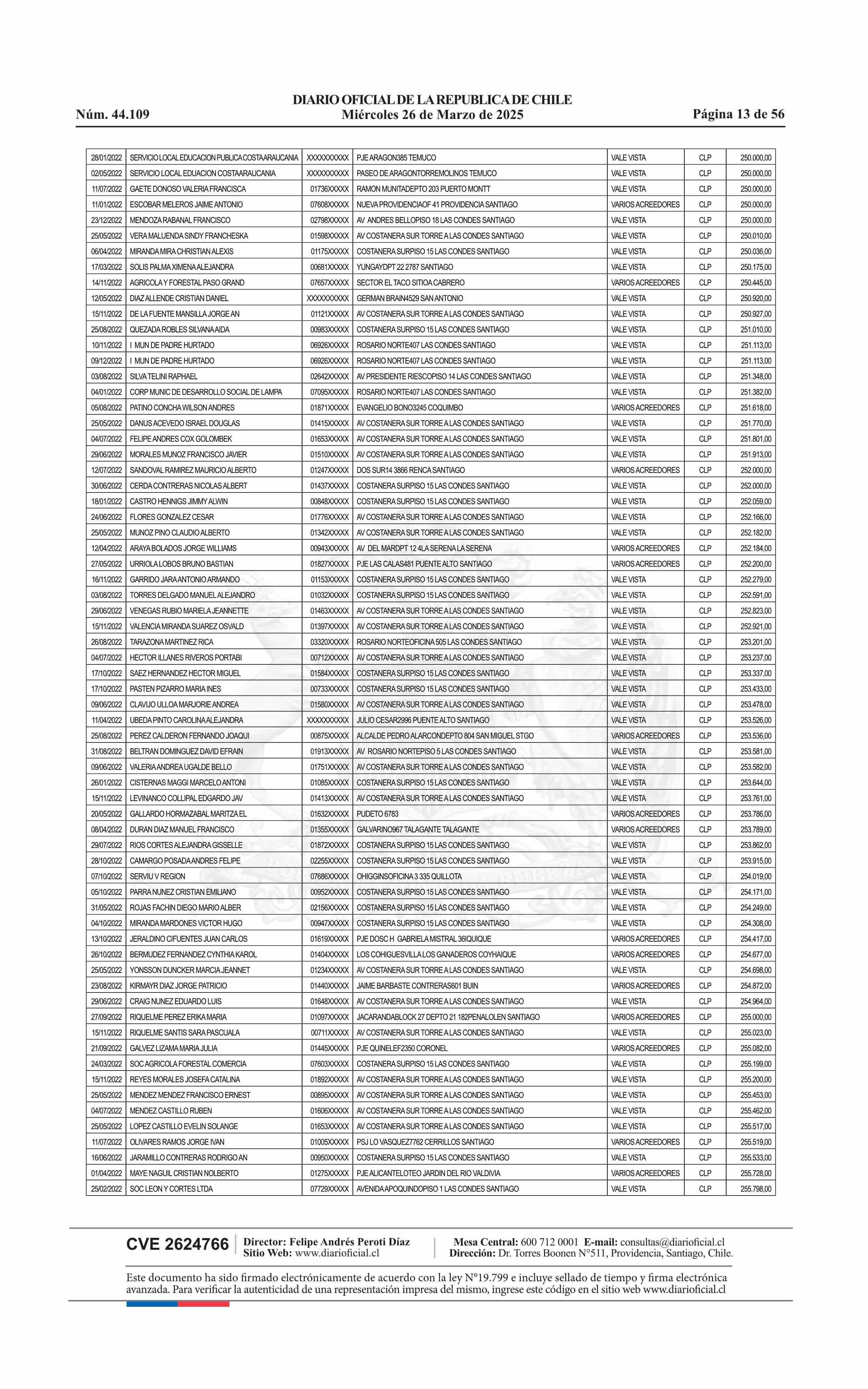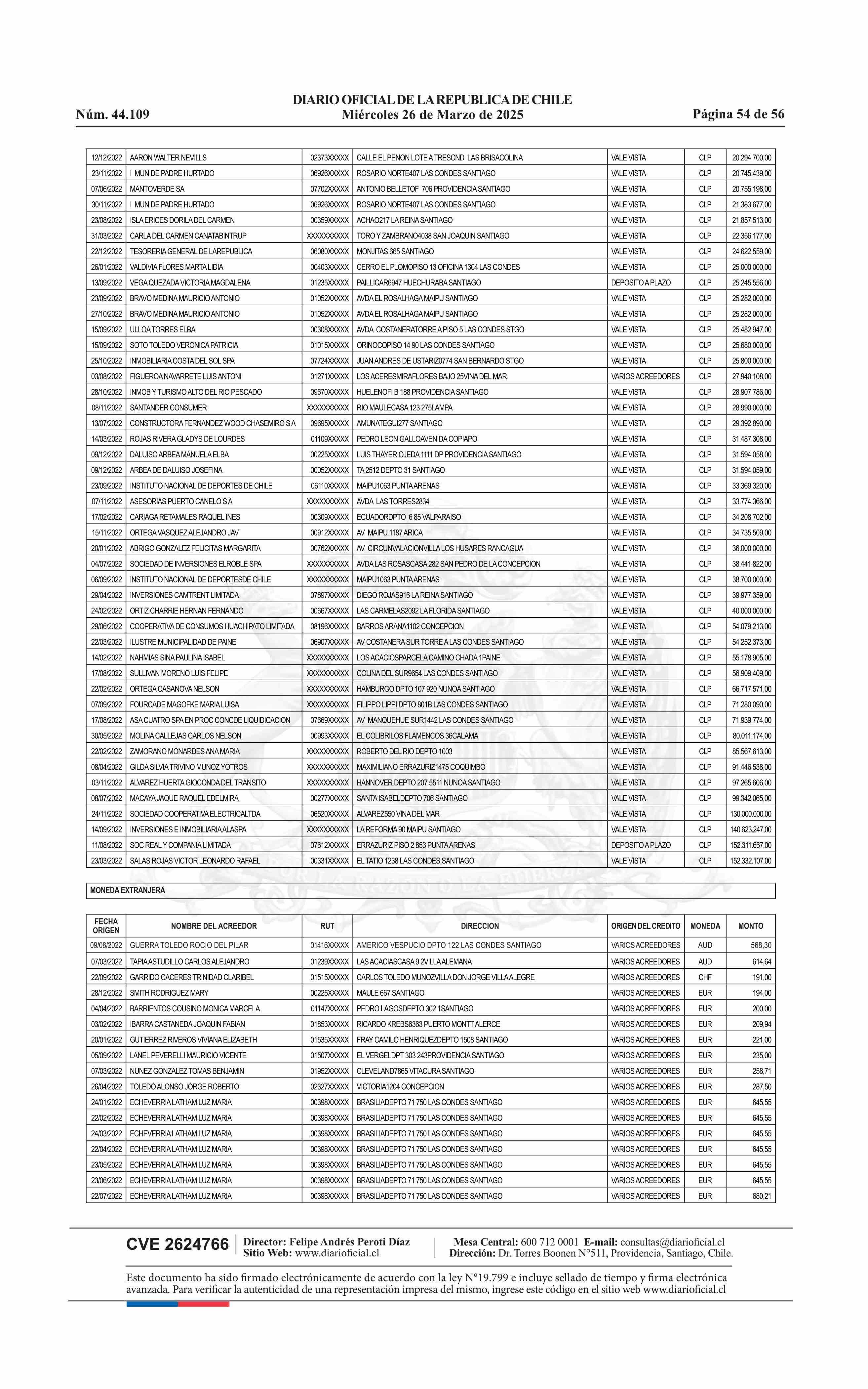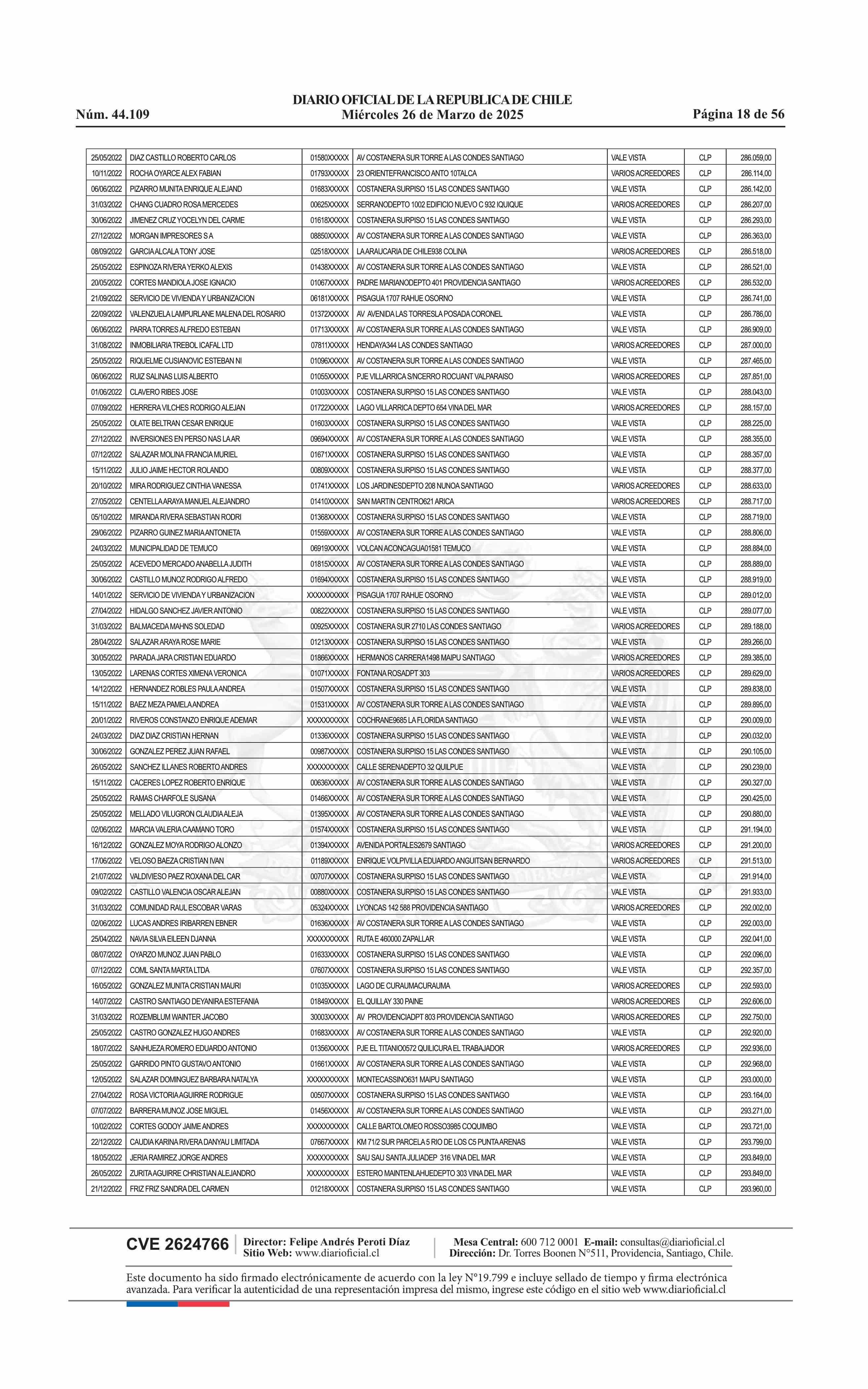 | Fuente: | Diario Oficial Edición Electrónica (Diario Oficial de Chile - 4 Avisos Destacados) | Página(s): | 9-64 |