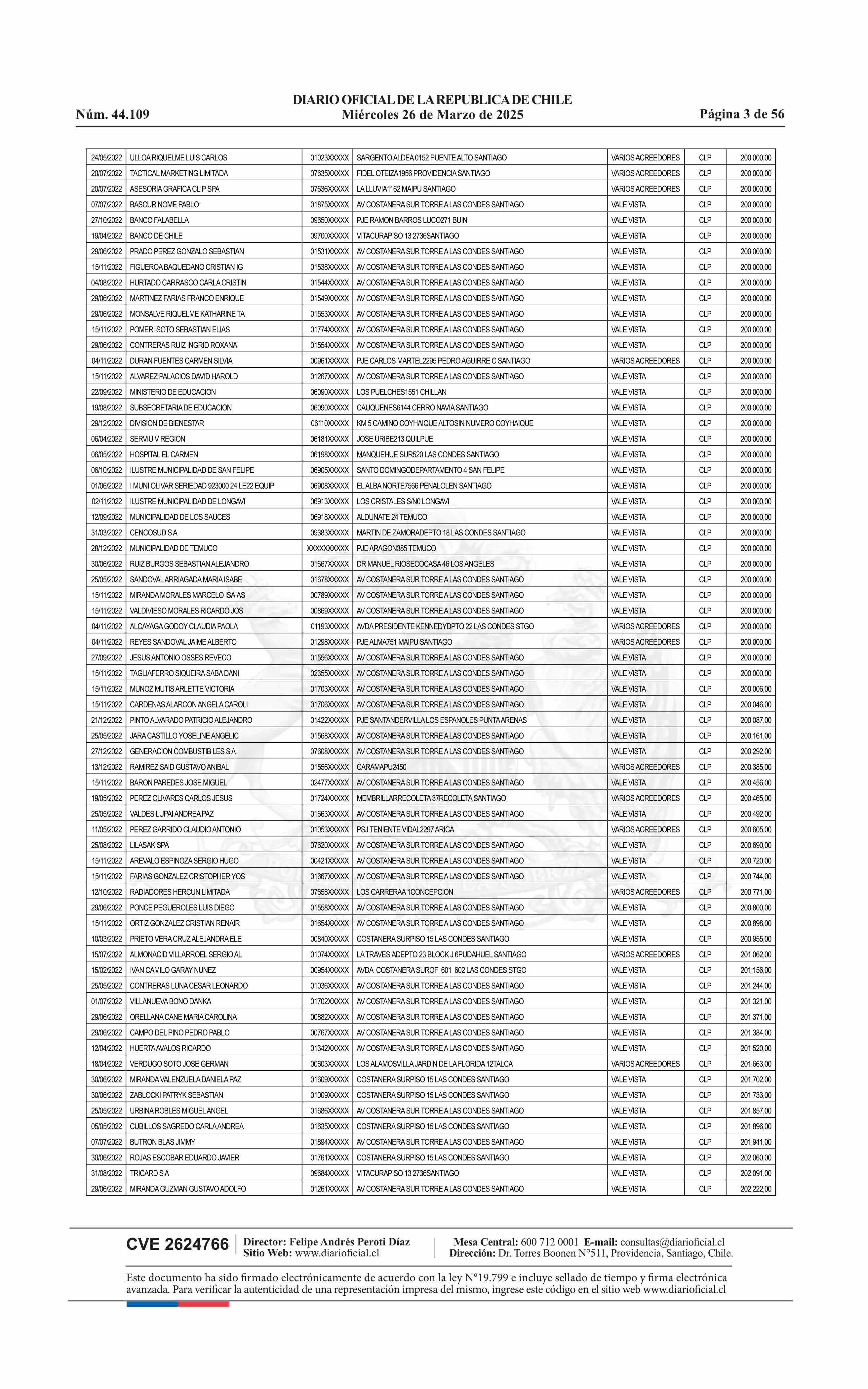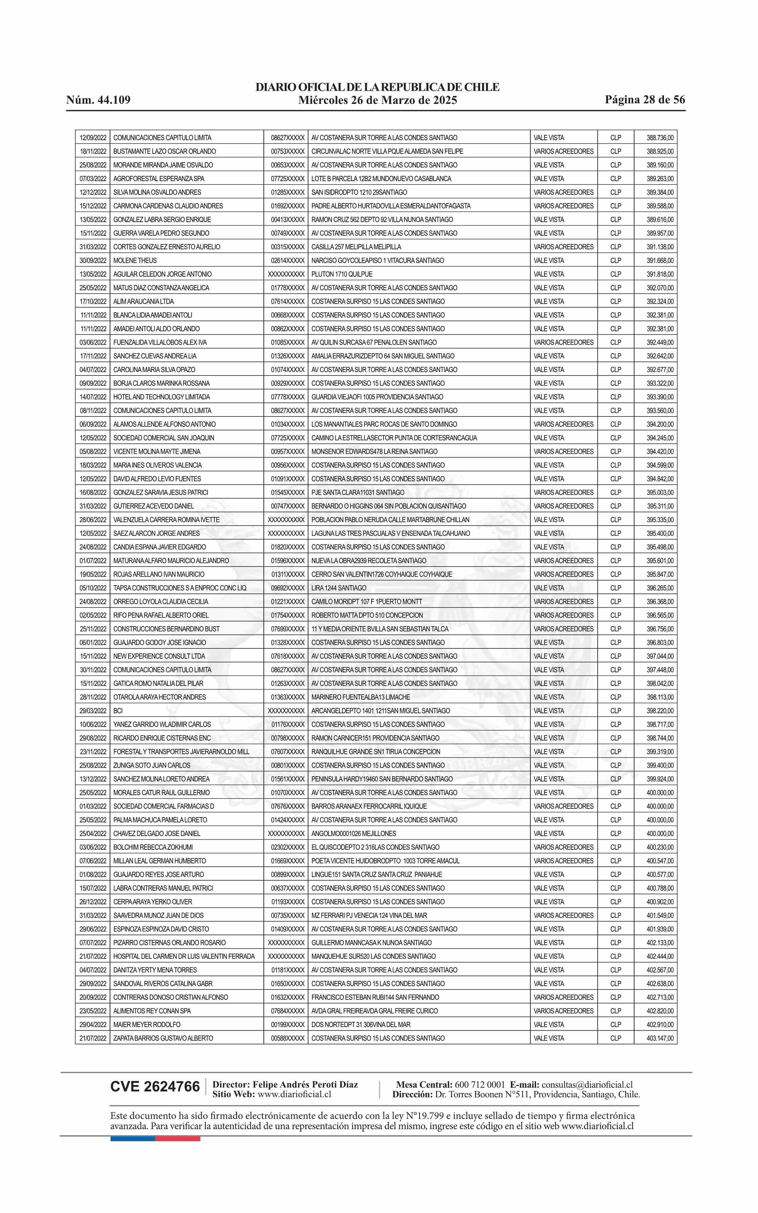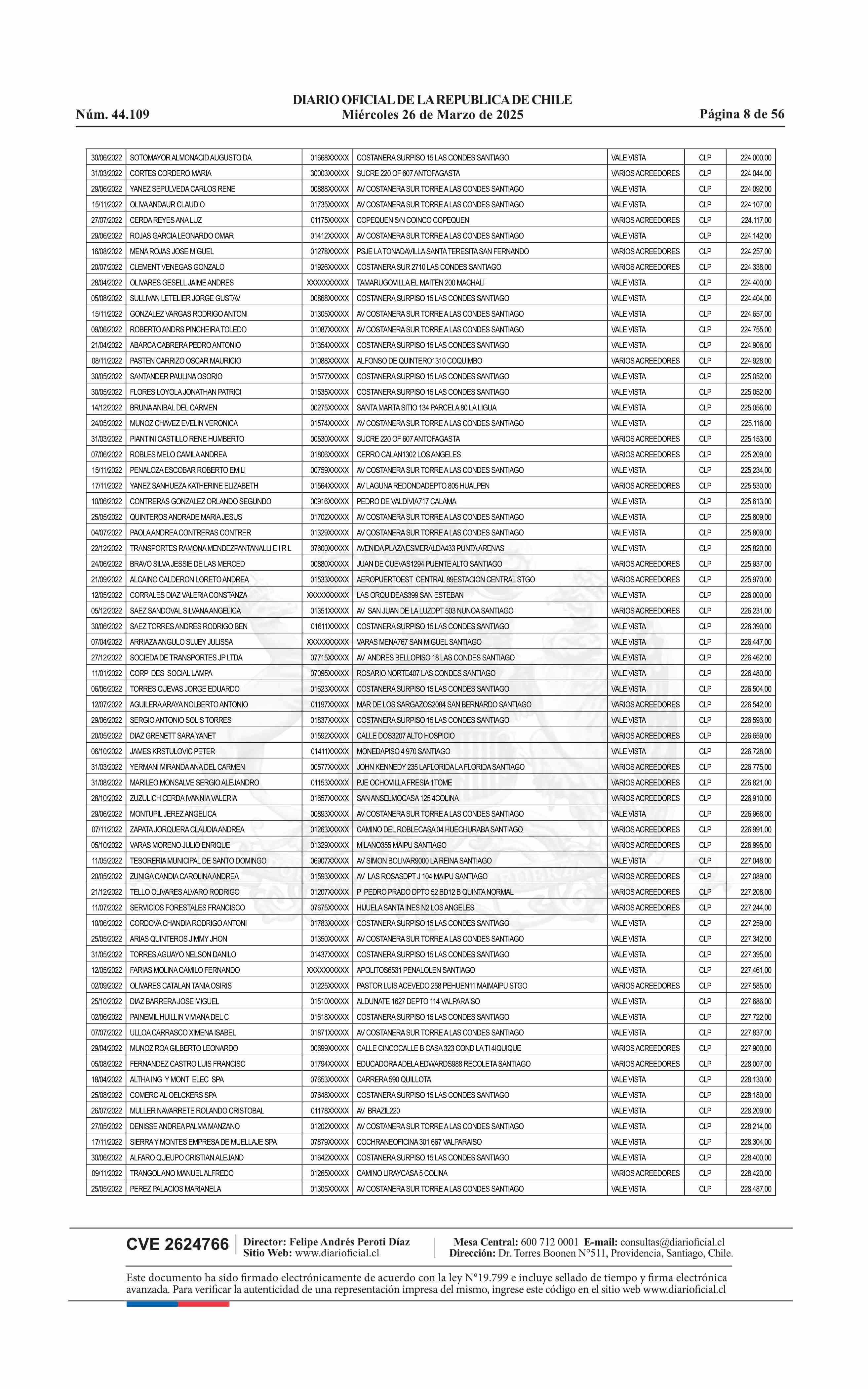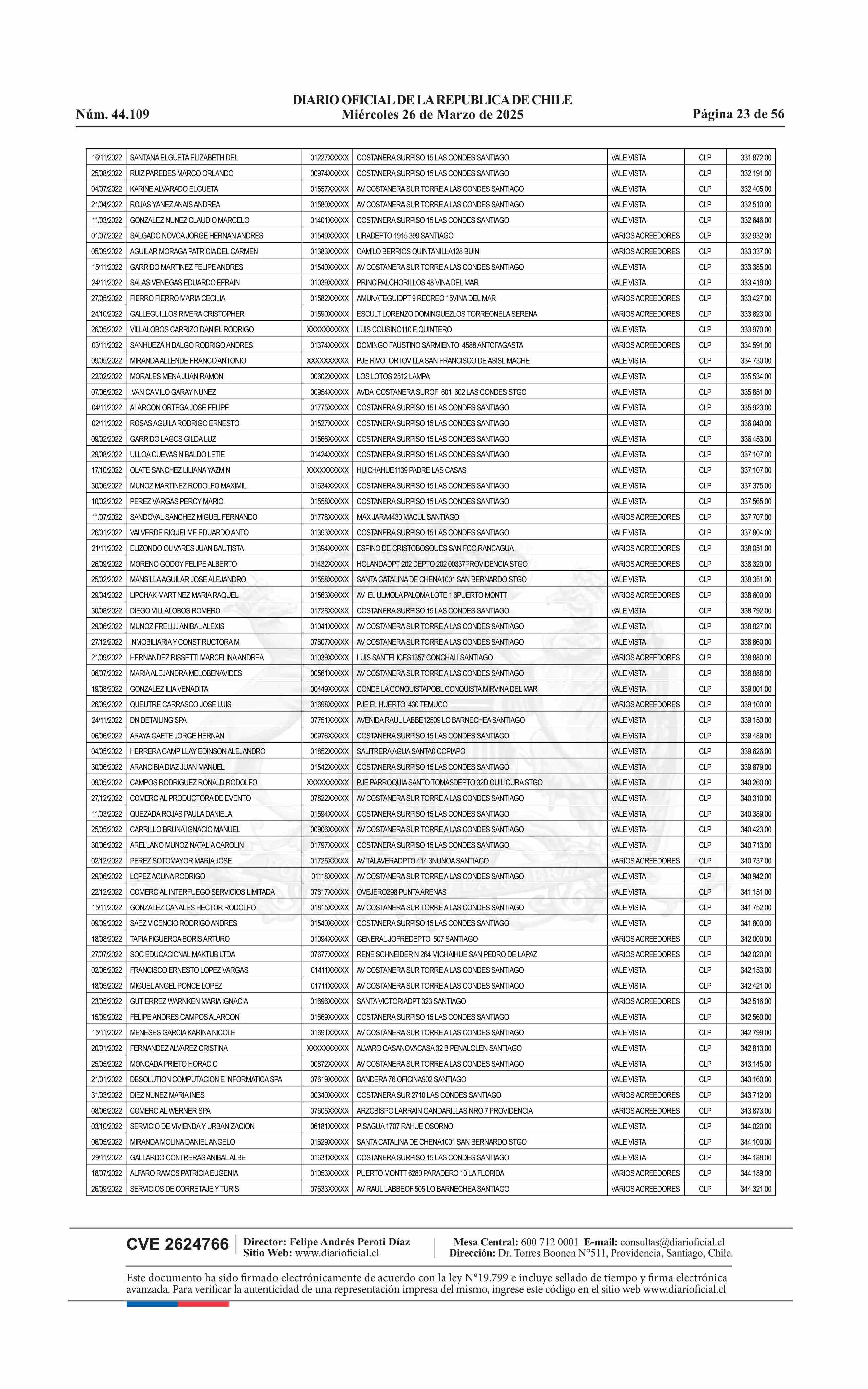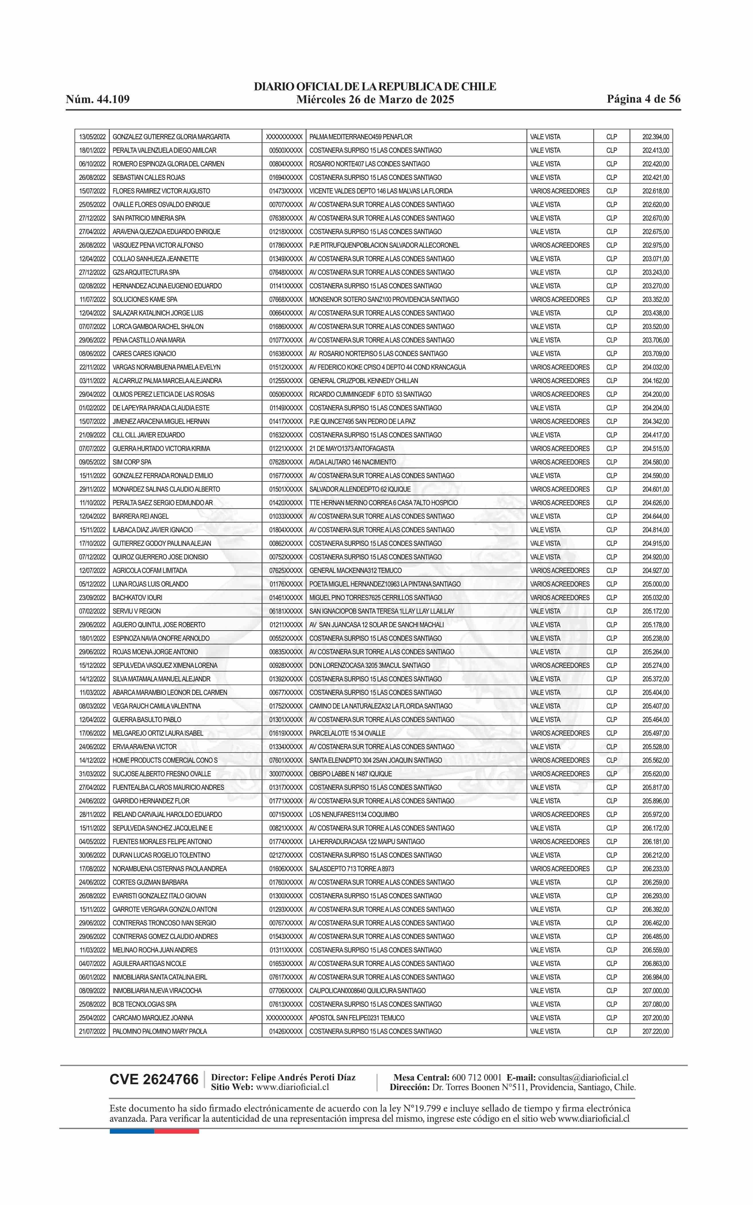 | Fuente: | Diario Oficial Edición Electrónica (Diario Oficial de Chile - 4 Avisos Destacados) | Página(s): | 9-64 |