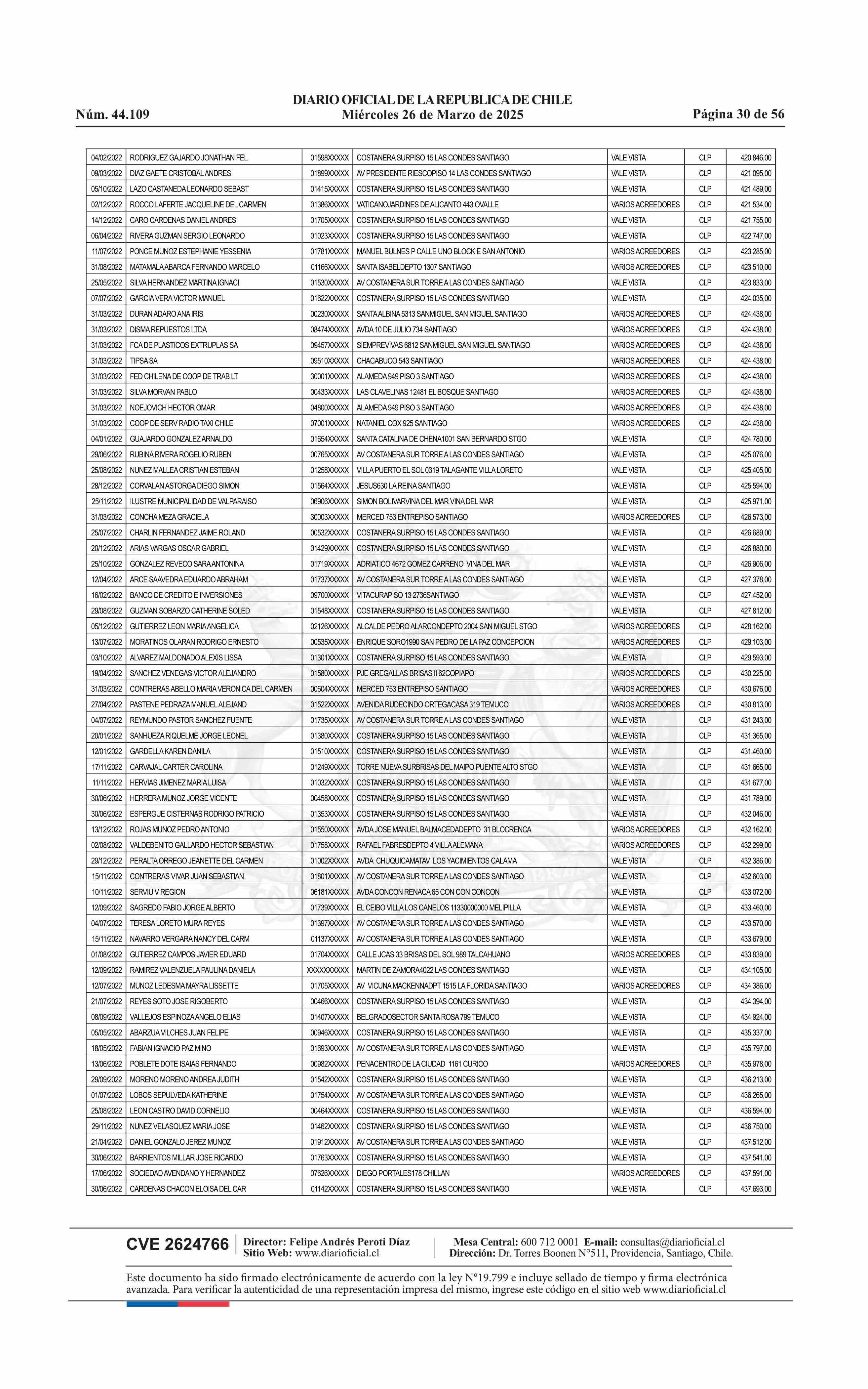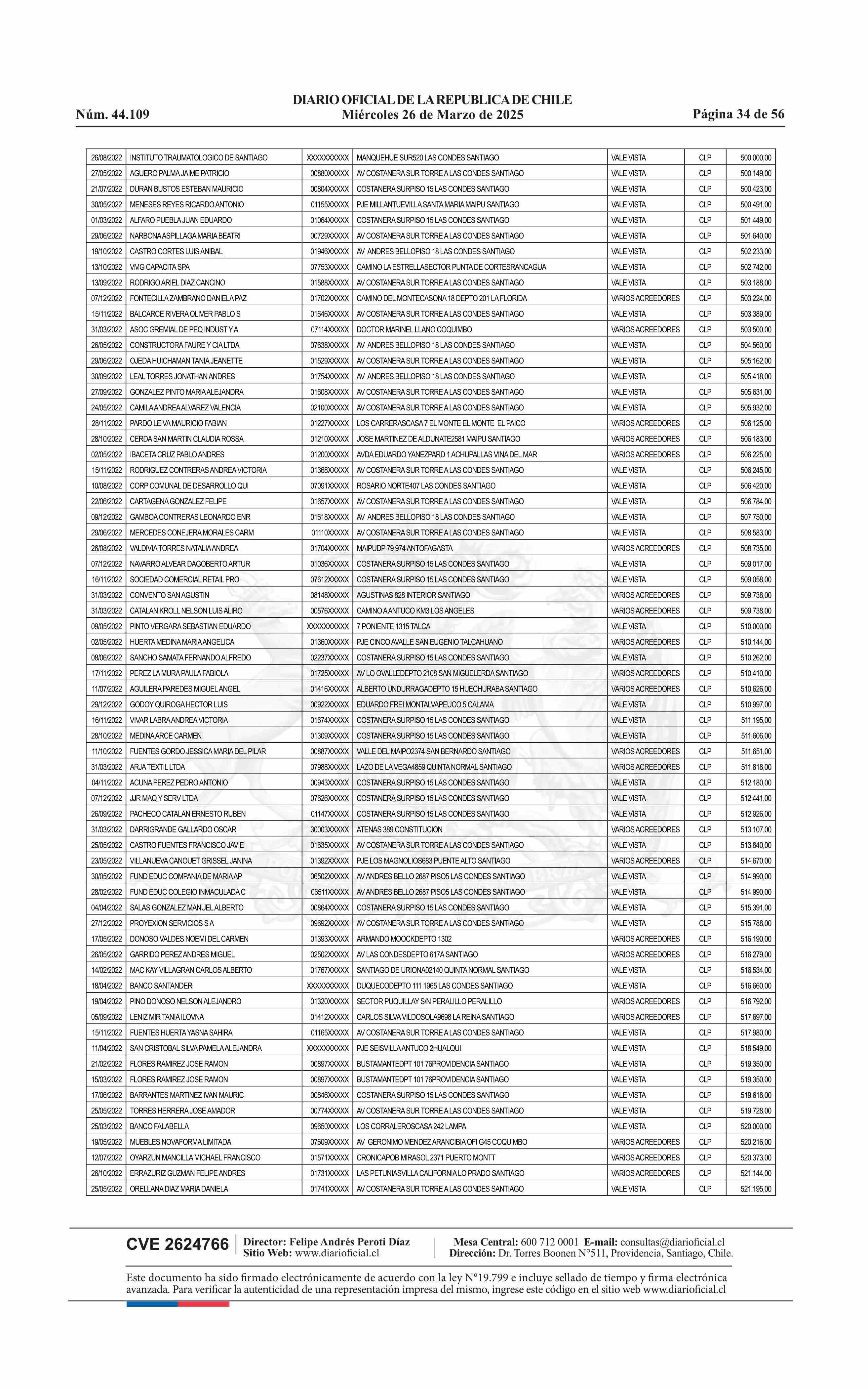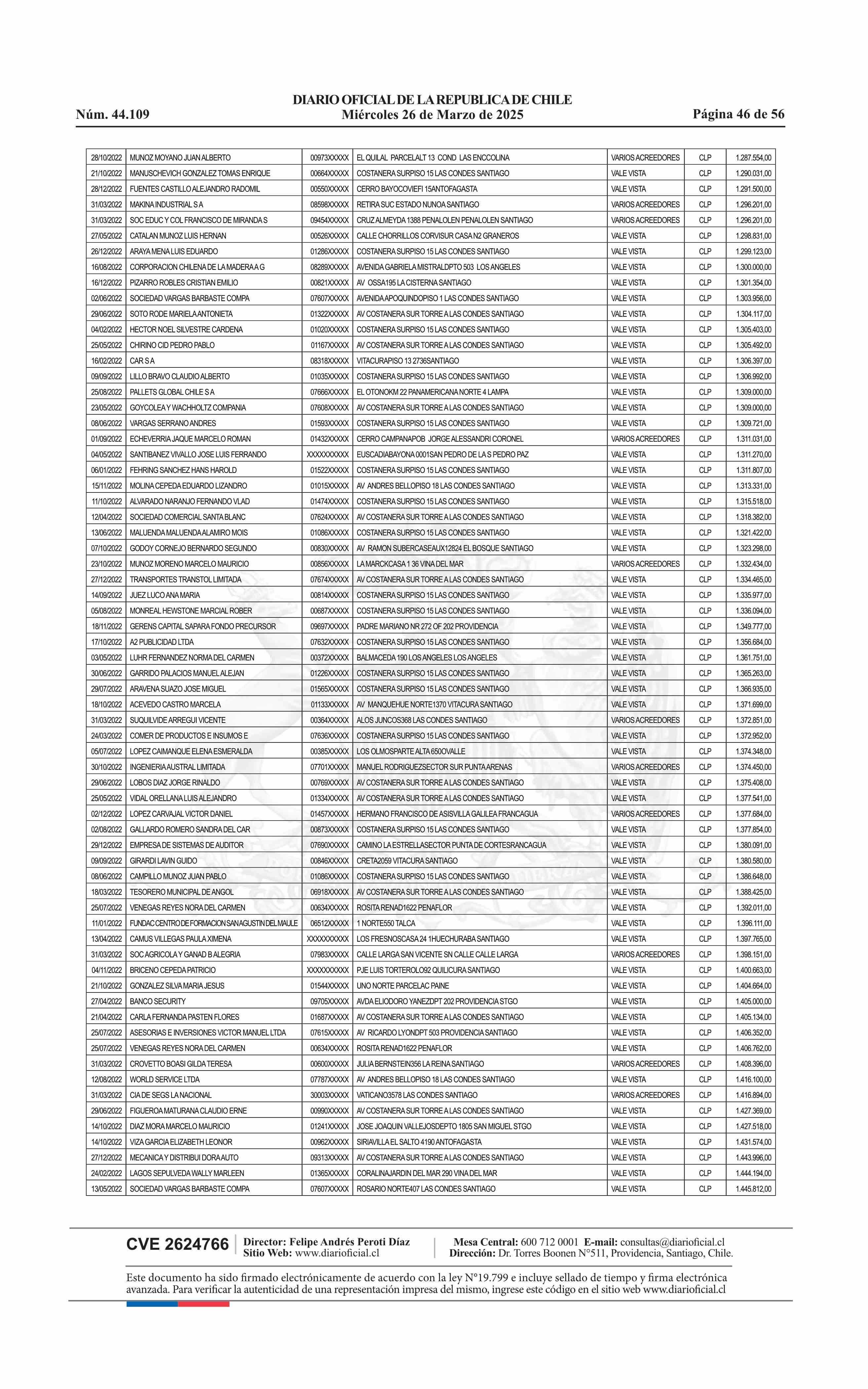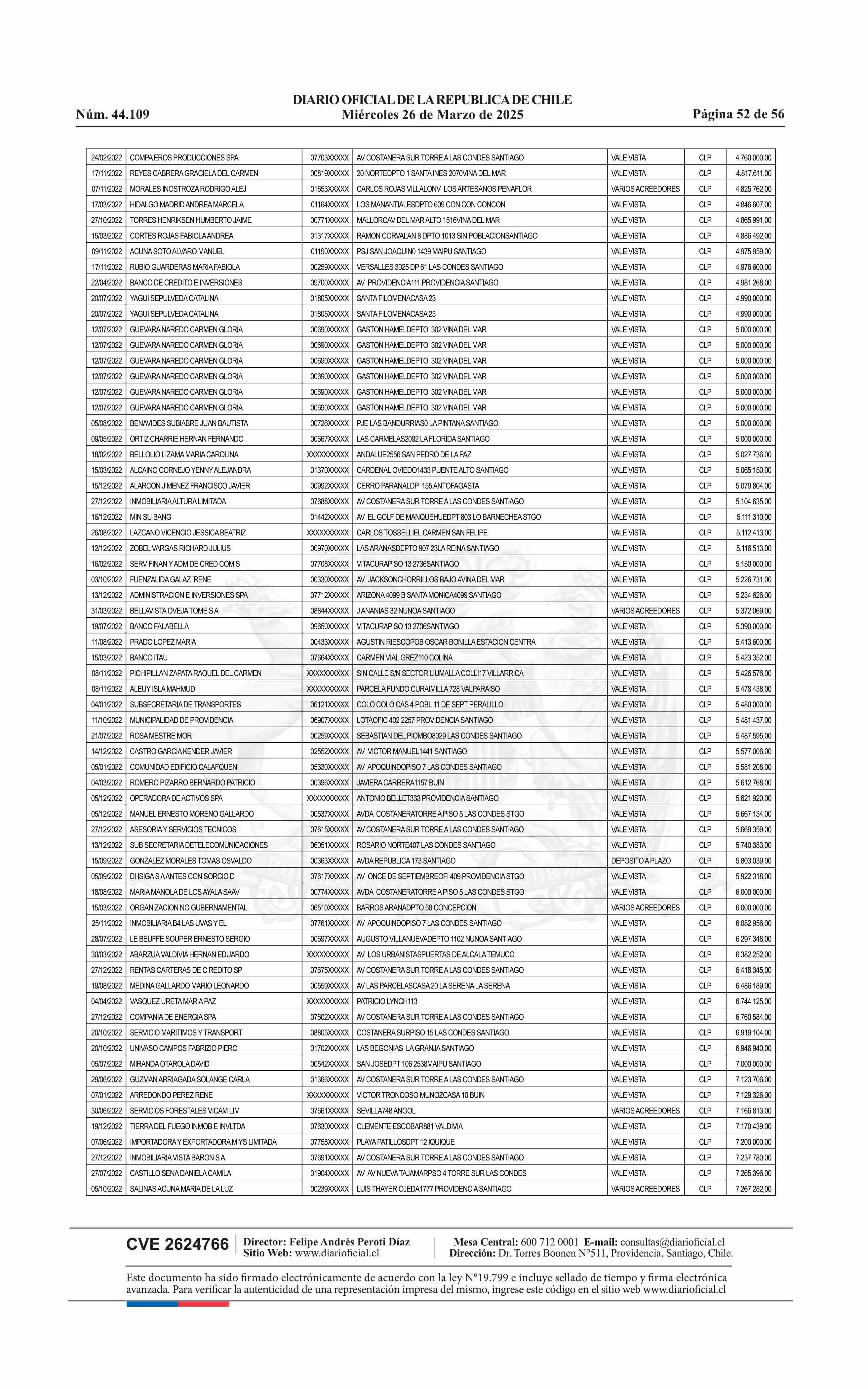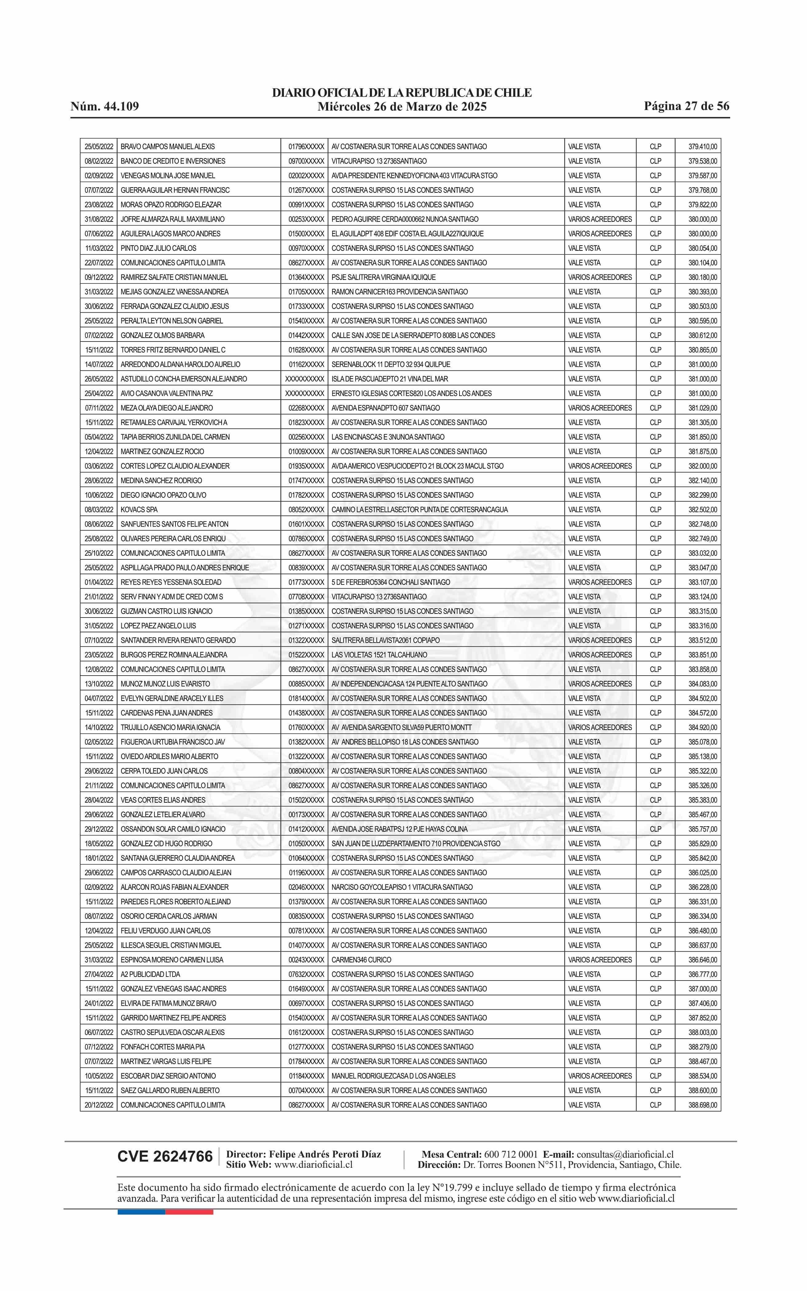 | Fuente: | Diario Oficial Edición Electrónica (Diario Oficial de Chile - 4 Avisos Destacados) | Página(s): | 9-64 |