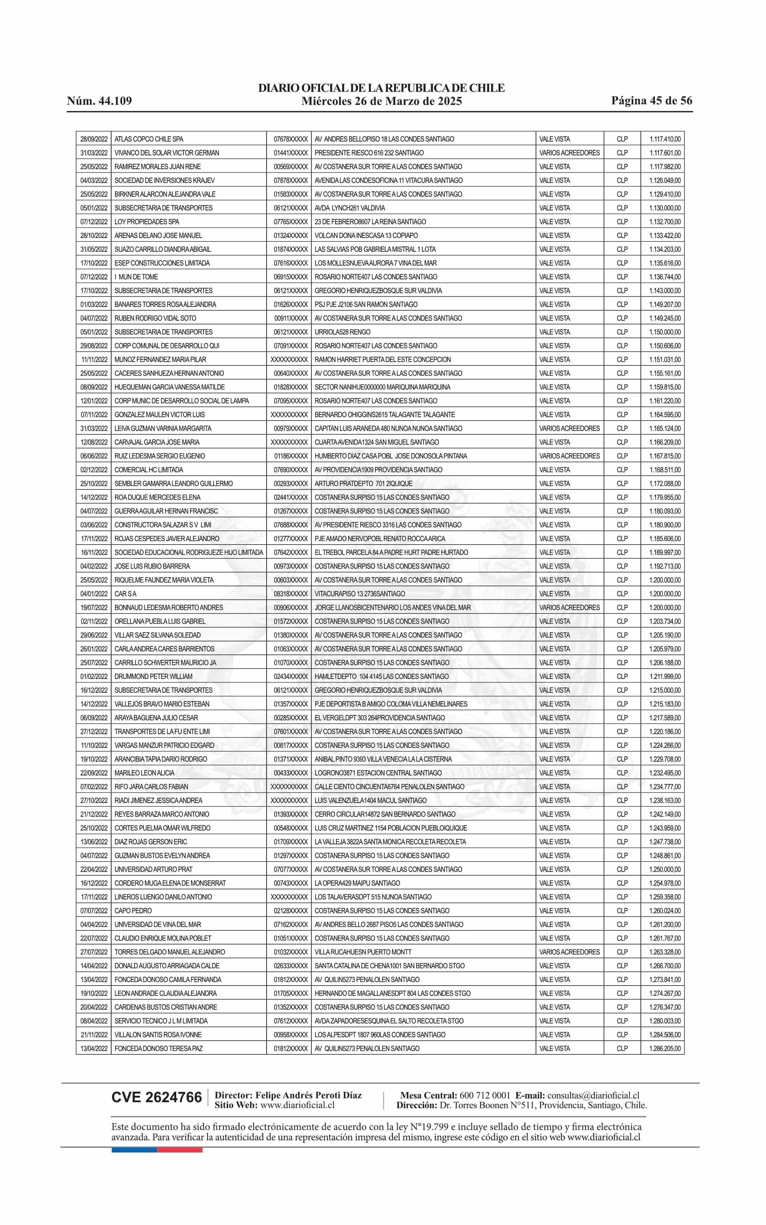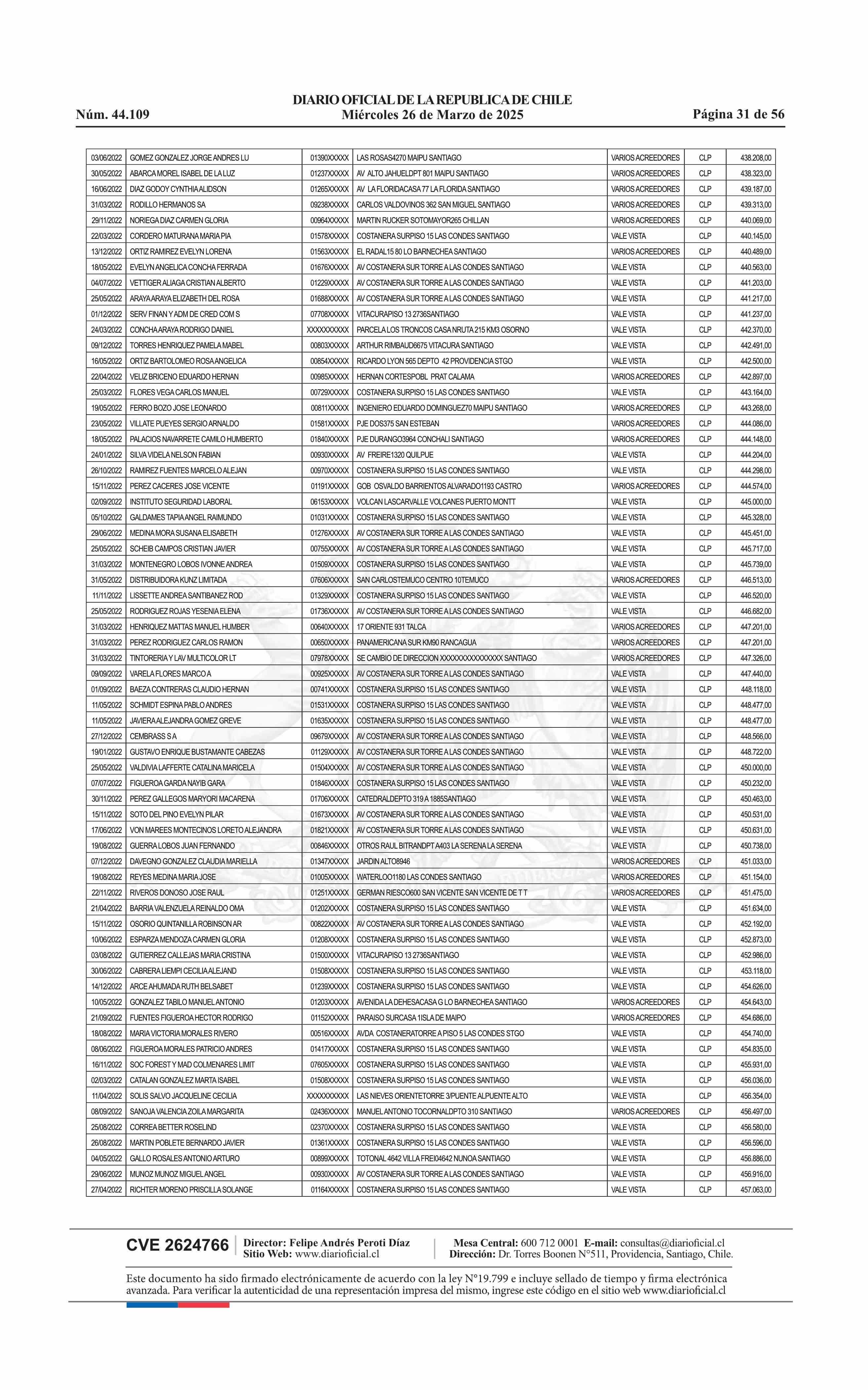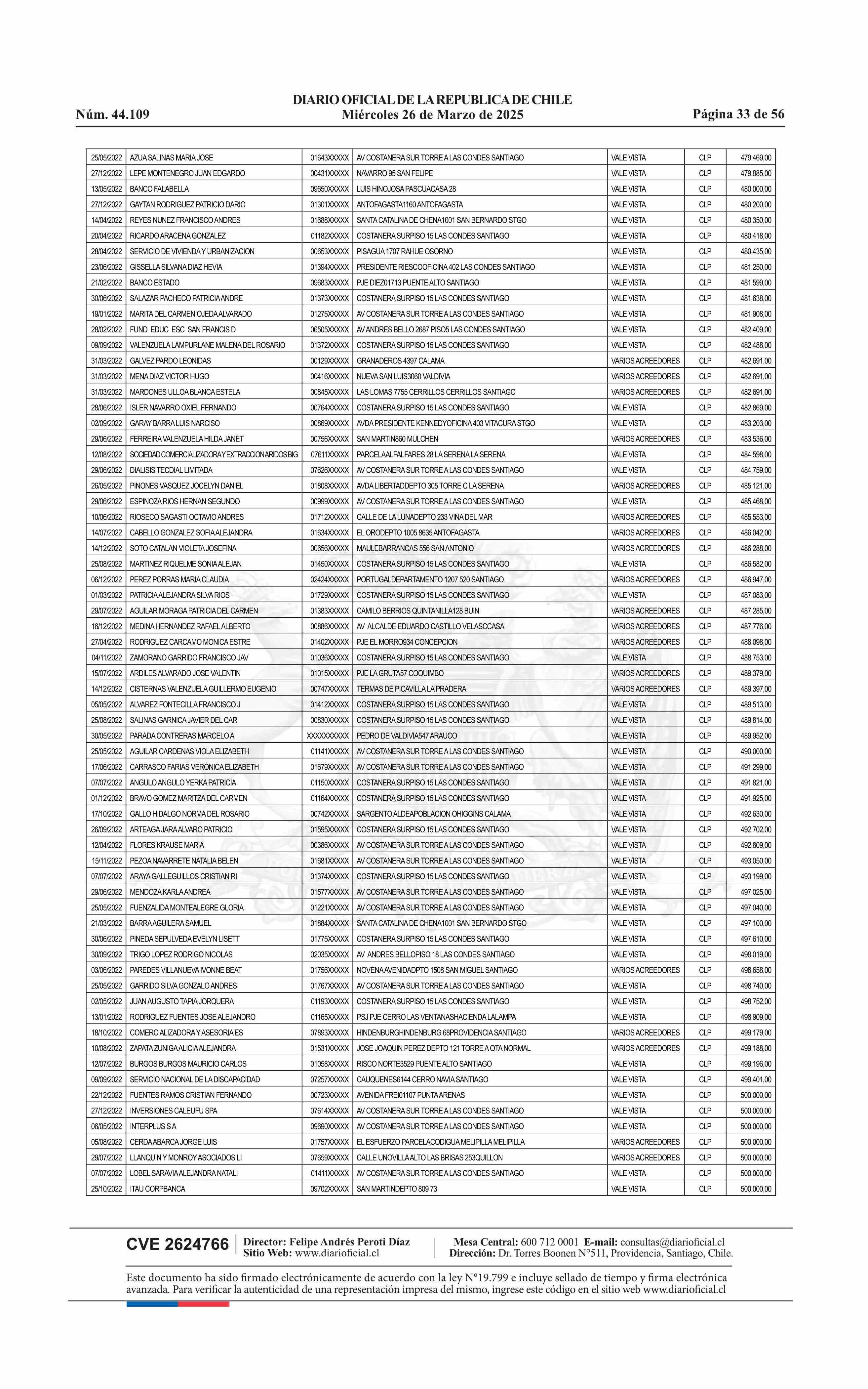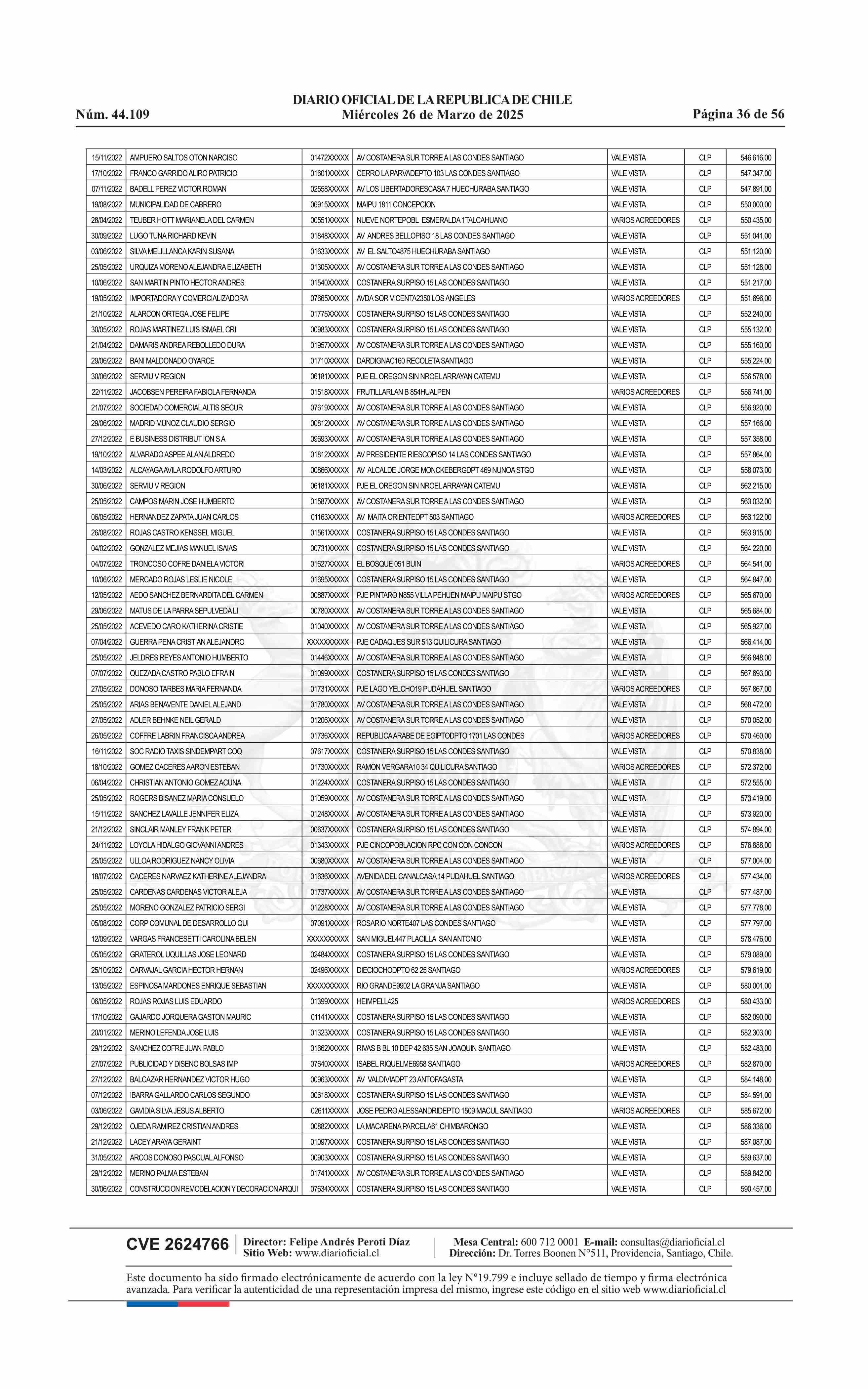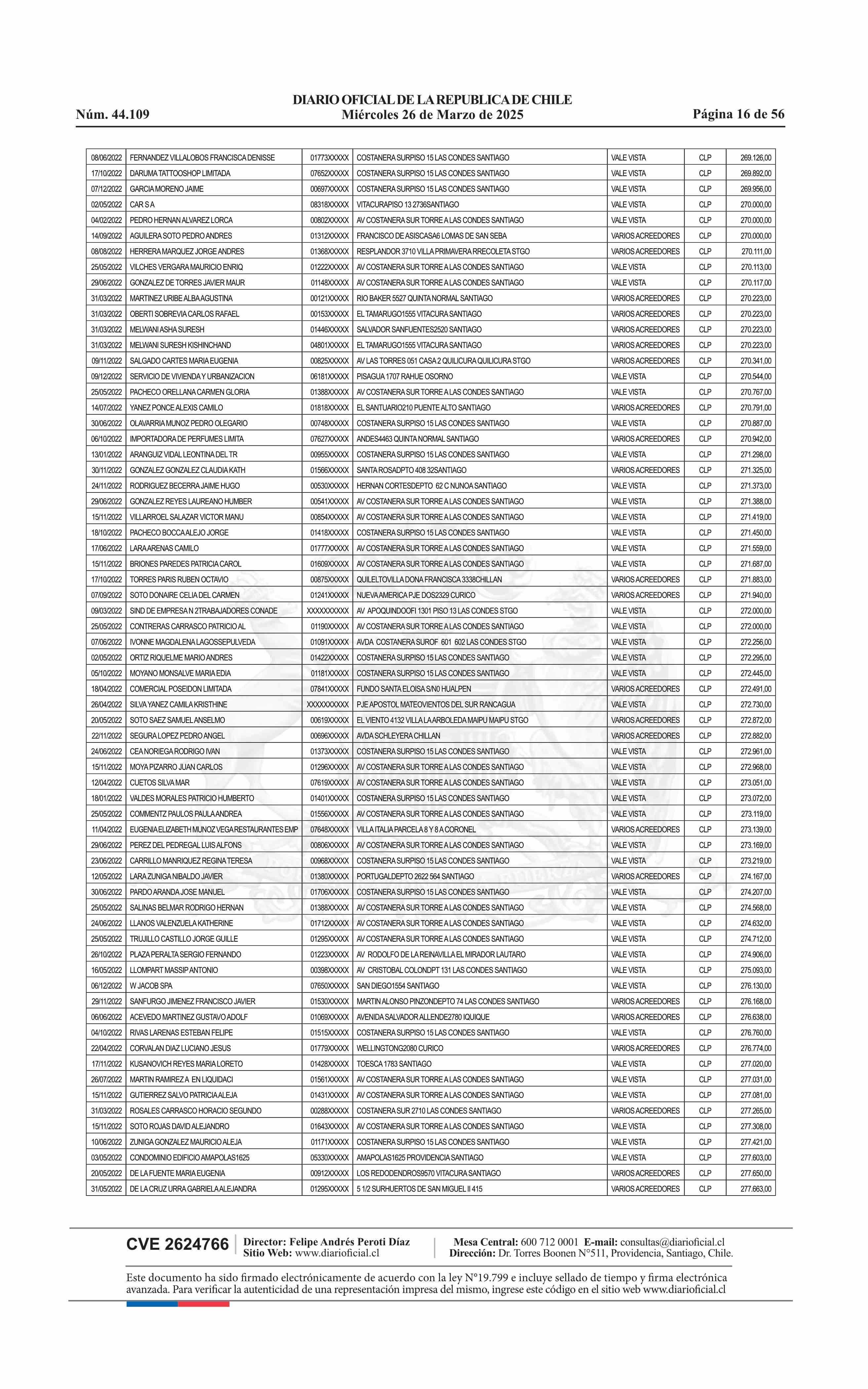 | Fuente: | Diario Oficial Edición Electrónica (Diario Oficial de Chile - 4 Avisos Destacados) | Página(s): | 9-64 |
