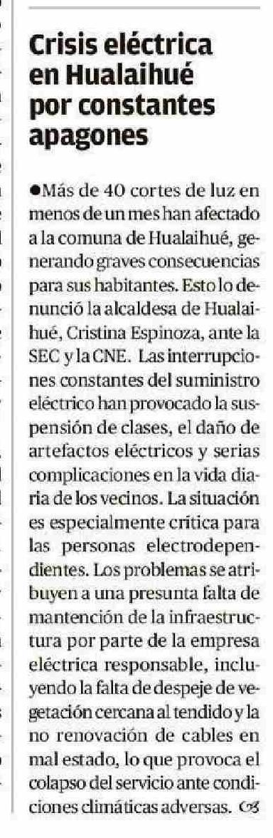 | Título: | Crisis eléctrica apagones en Hualaihué por constantes |