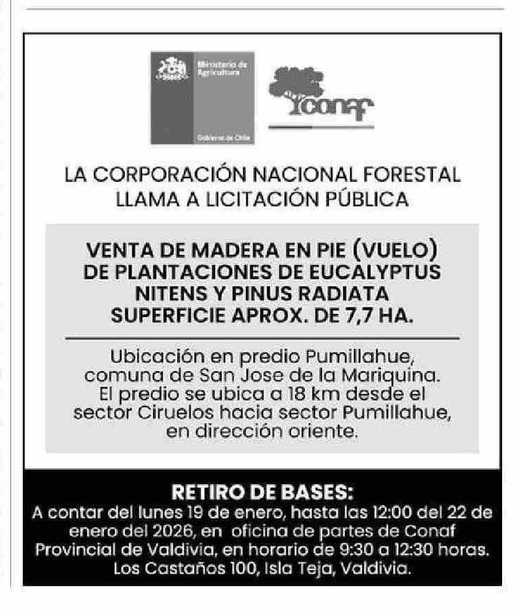 Fecha: 17-01-2026 Sector: Aviso Licitaciones Región: Región de Los Ríos