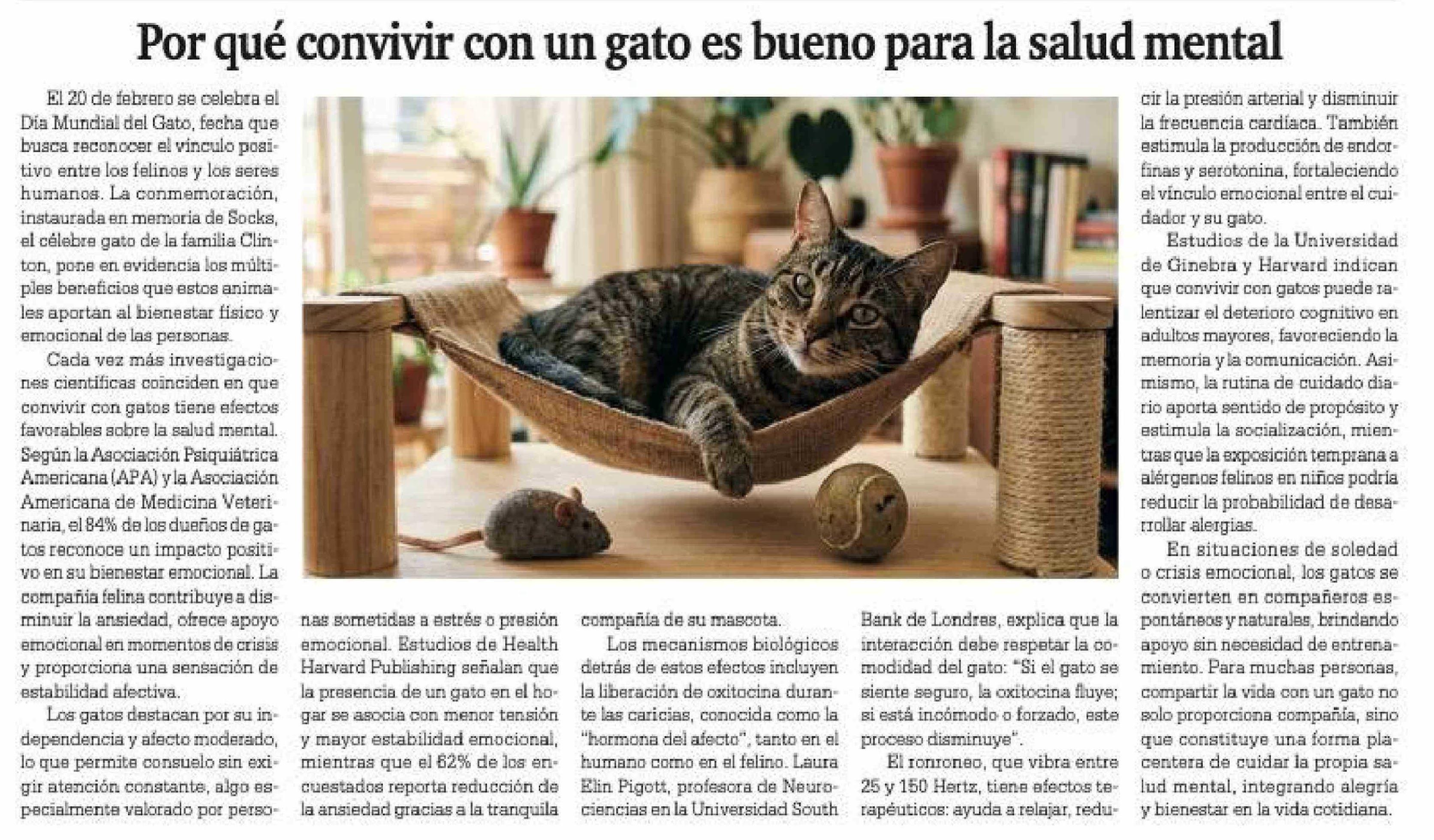 Por qué convivir con un gato es bueno para la salud mental 21-02-2026 La Prensa Austral |