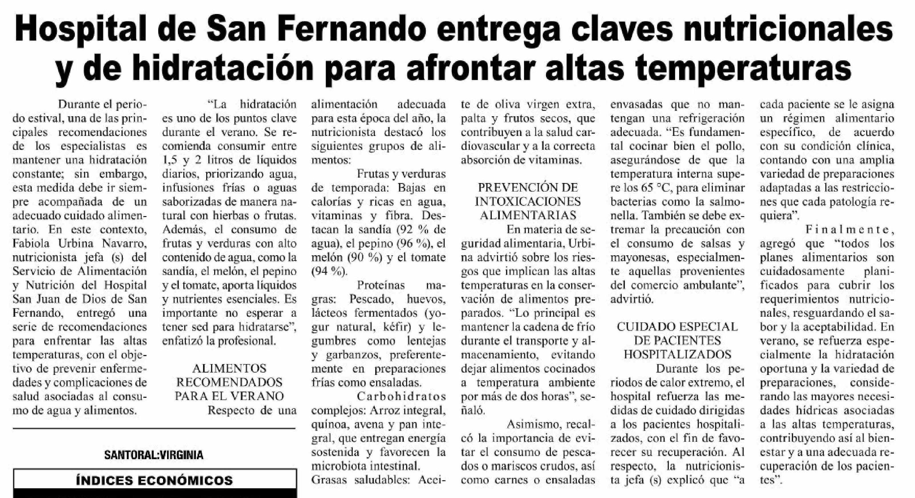 Título: Hospital de San Fernando entrega claves nutricionales y de hidratación para afrontar altas temperaturas