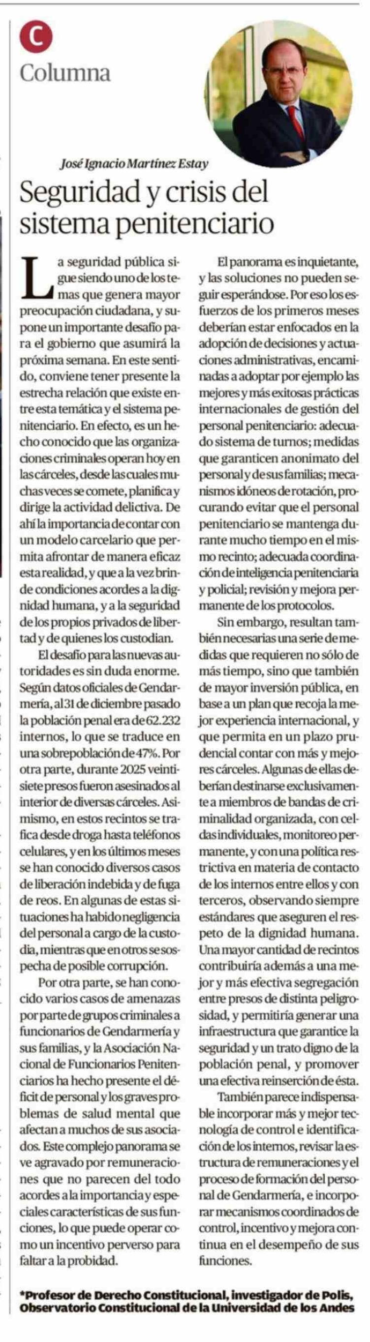 | Título: | Columnas de Opinión: Seguridad y crisis del sistema penitenciario |