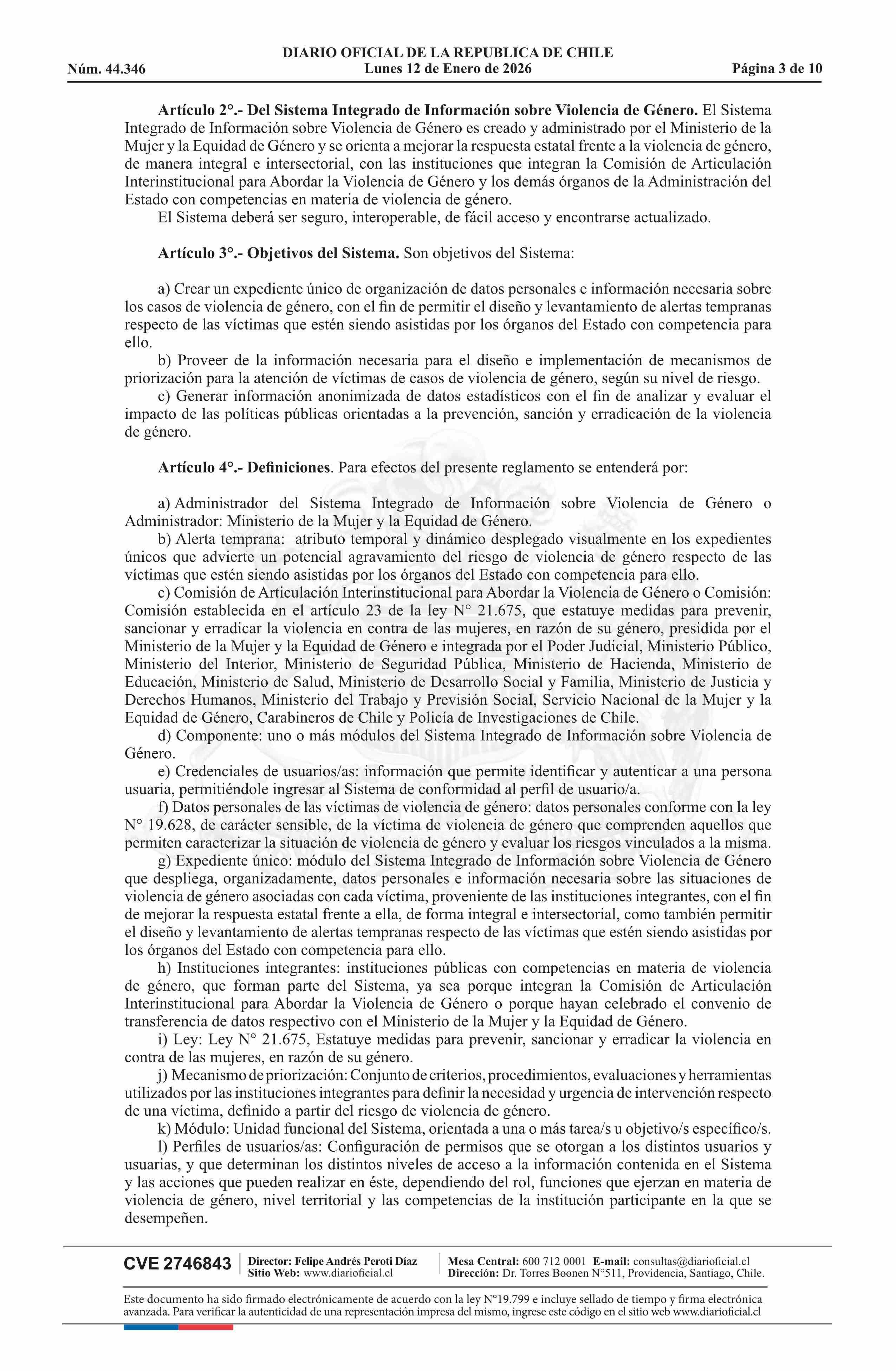 Título: Decreto número 18, de 2025.- Aprueba Reglamento que regula el Sistema Integrado de Información sobre Violencia de Género, según lo dispuesto en el artículo 26 de la ley N° 21.675