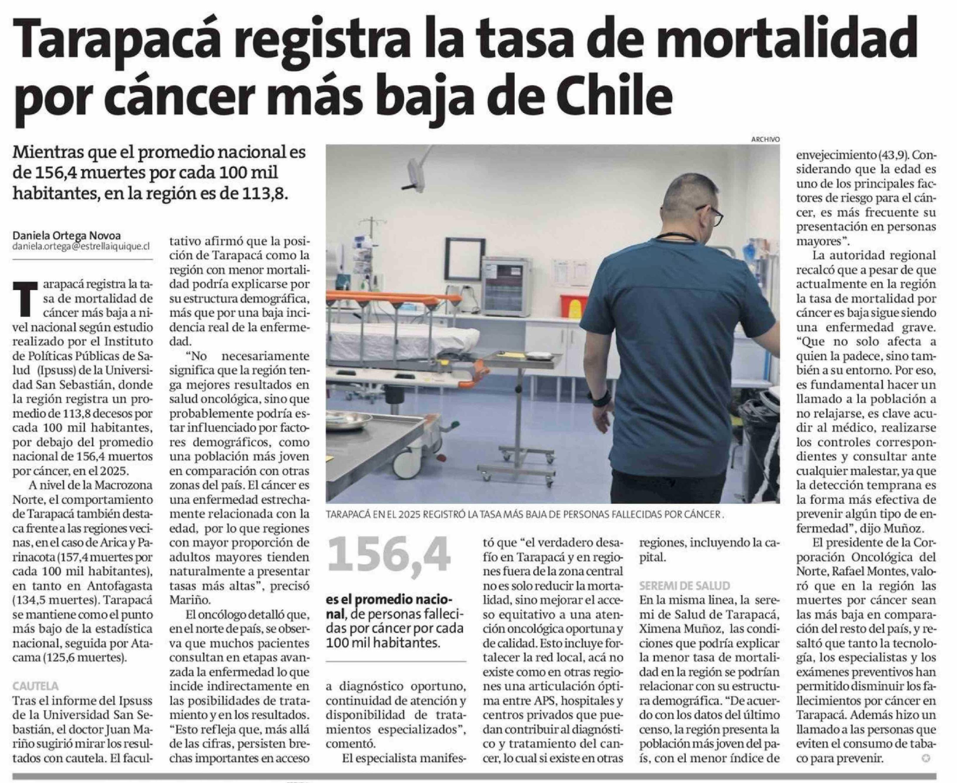Título: Tarapacá registra la tasa de mortalidad por cáncer más baja de Chile
