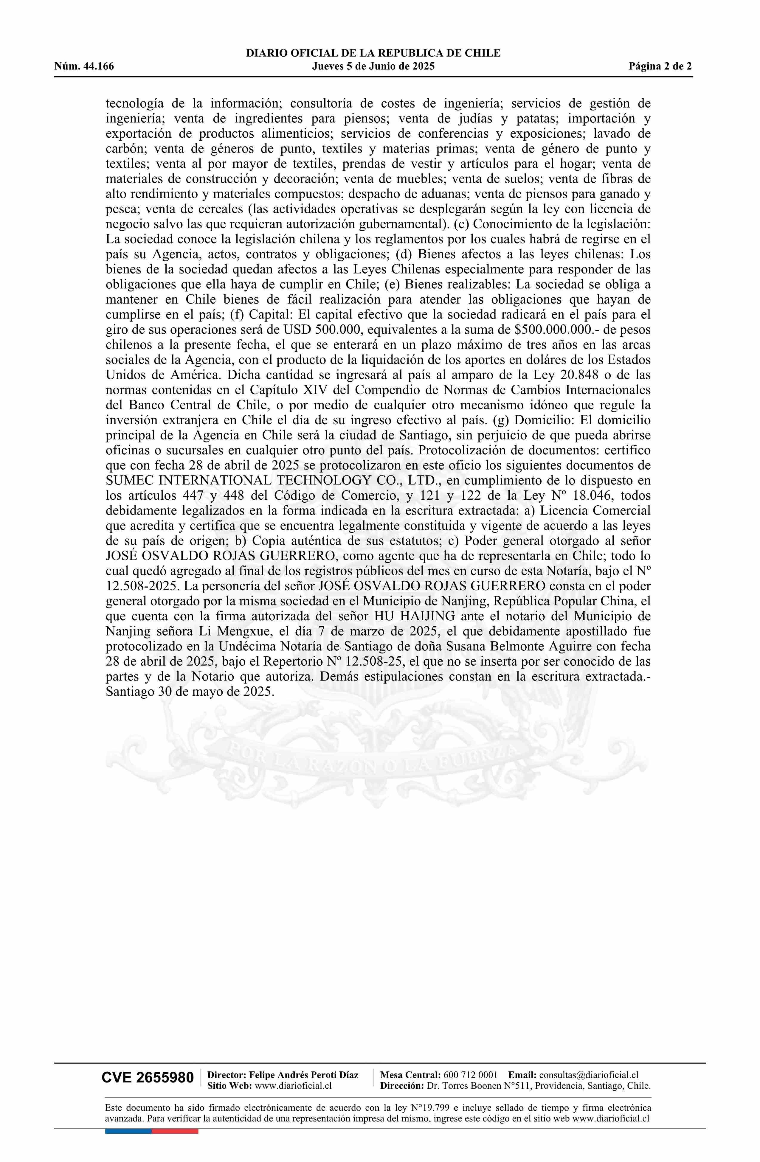 SUMEC INTERNATIONAL TECHNOLOGY, AGENCIA EN CHILE