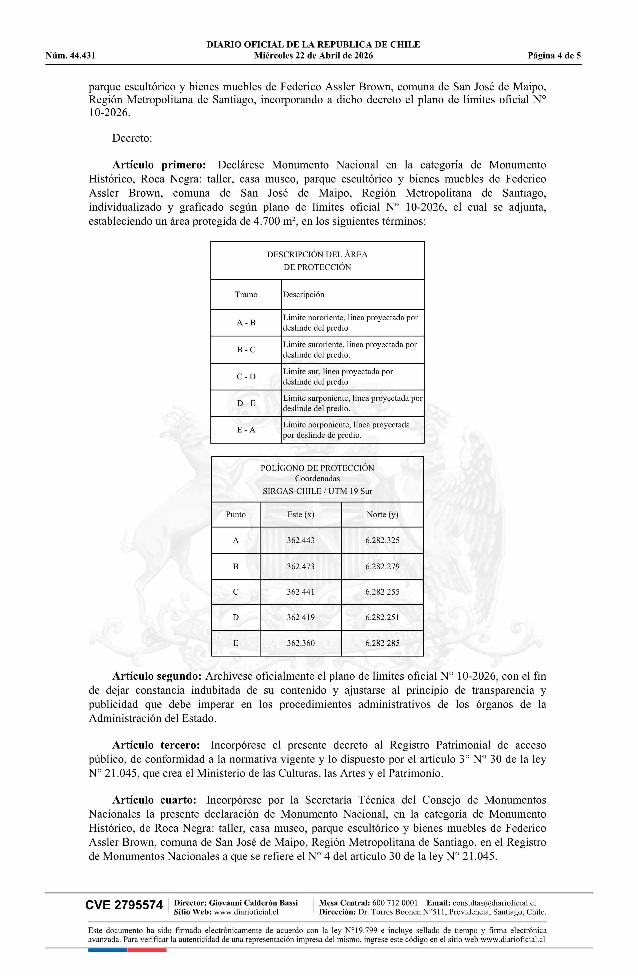Título: Decreto exento número 55, de 2026.- Declara Monumento Nacional, en la categoría de Monumento Histórico, a Roca Negra: Taller, Casa Museo, Parque Escultórico y Bienes Muebles de Federico Assler Brown, comuna de San José de Maipo, Región Metropolitana de Santiago