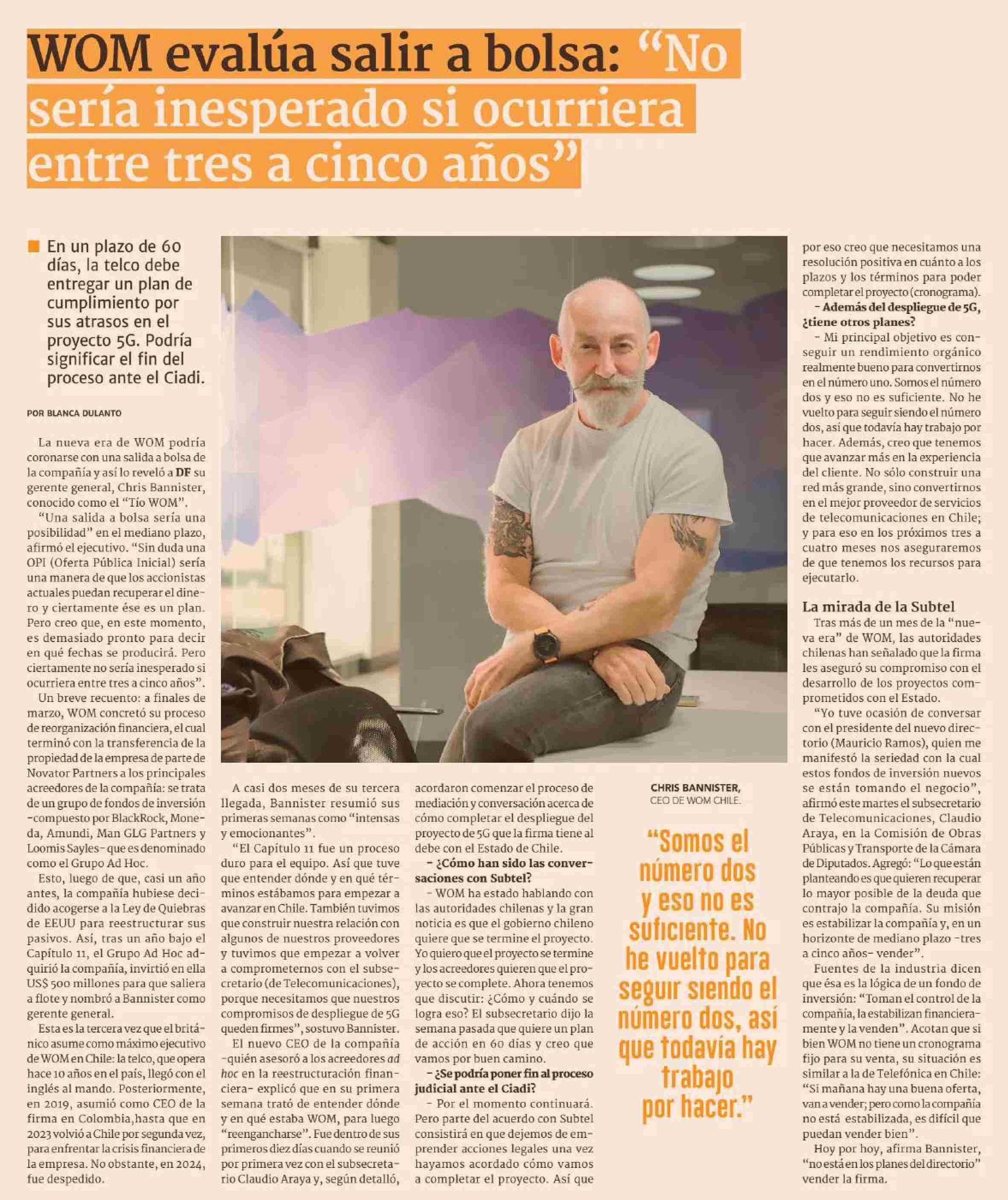 WOM evalúa salir a bolsa: "No seria inesperado si ocurriera entre tres a cinco años” 16-05-2025 Diario Financiero |