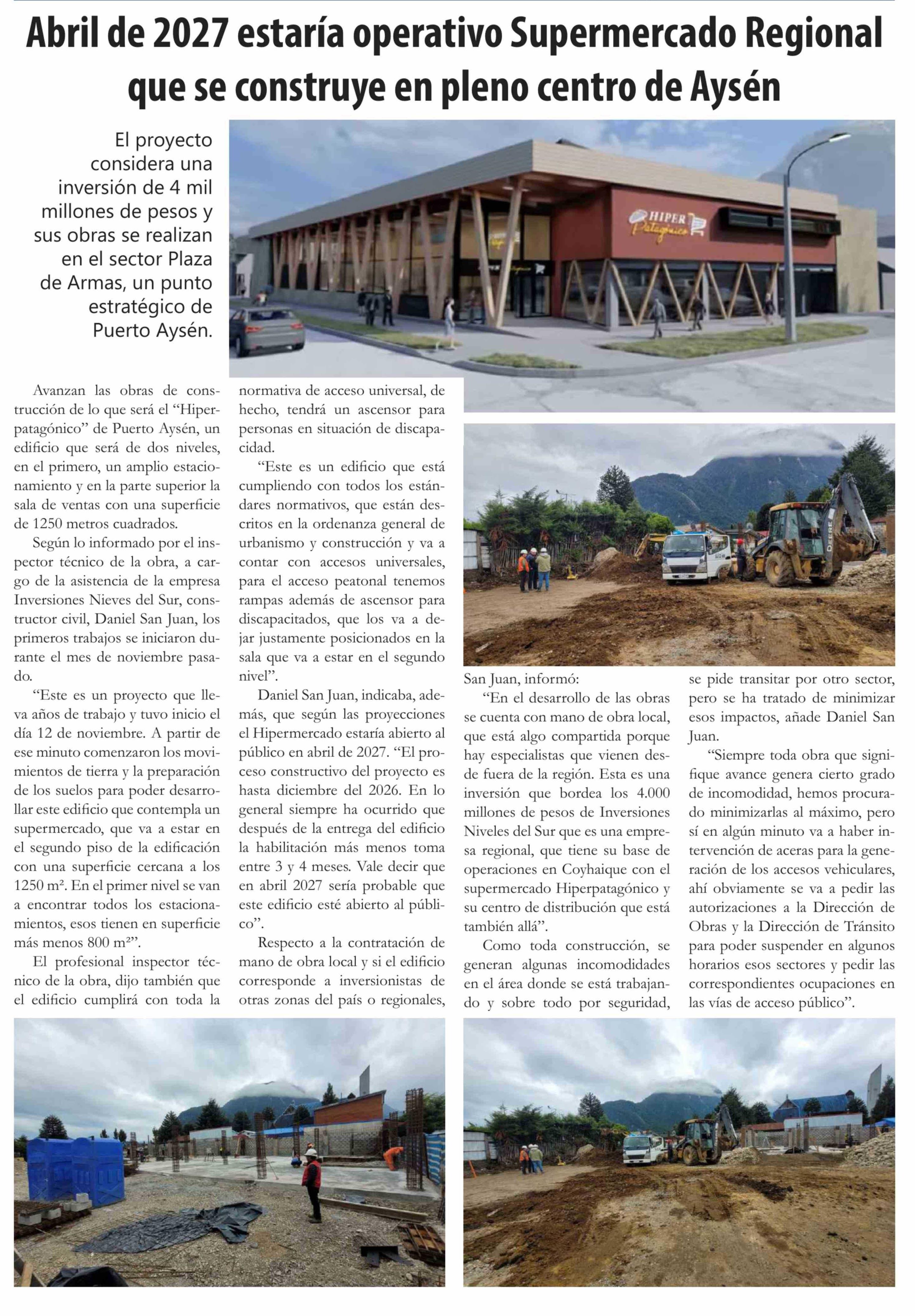 | Título: | Abril de 2027 estaría operativo Supermercado Regional que se construye en pleno centro de Aysén |