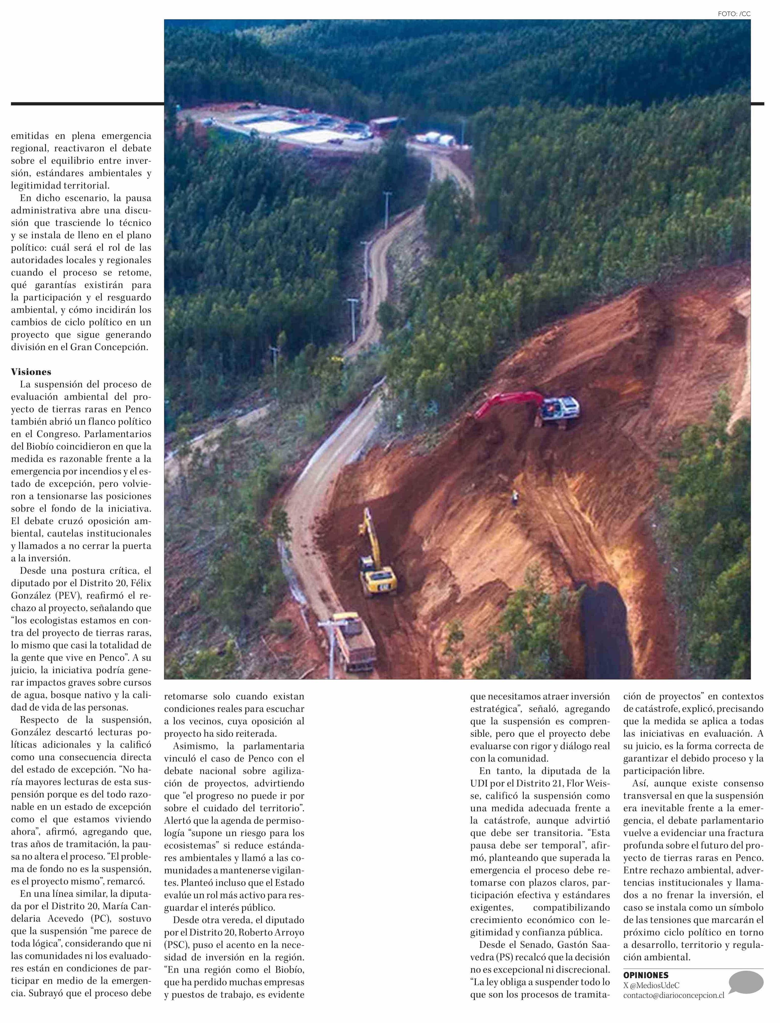 Pausa de evaluación ambiental de Tierras Raras en Penco abrió nuevo debate sobre el proyecto 24-01-2026 Diario Concepción |