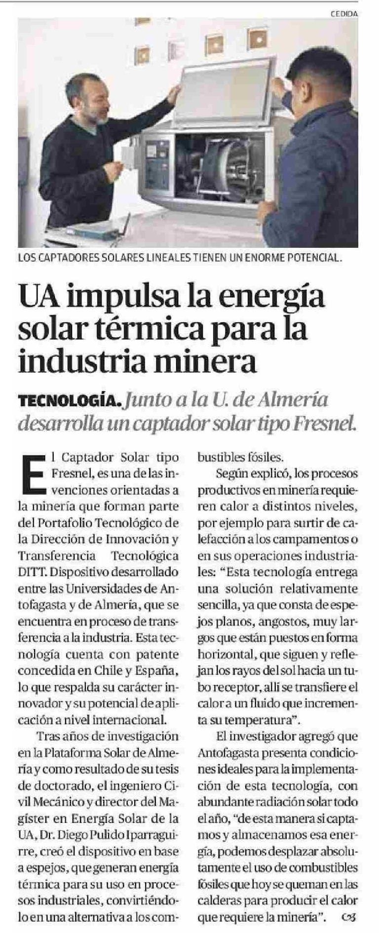 UA impulsa la energía solar térmica para industria minera 15-05-2025 El Mercurio de Calama |