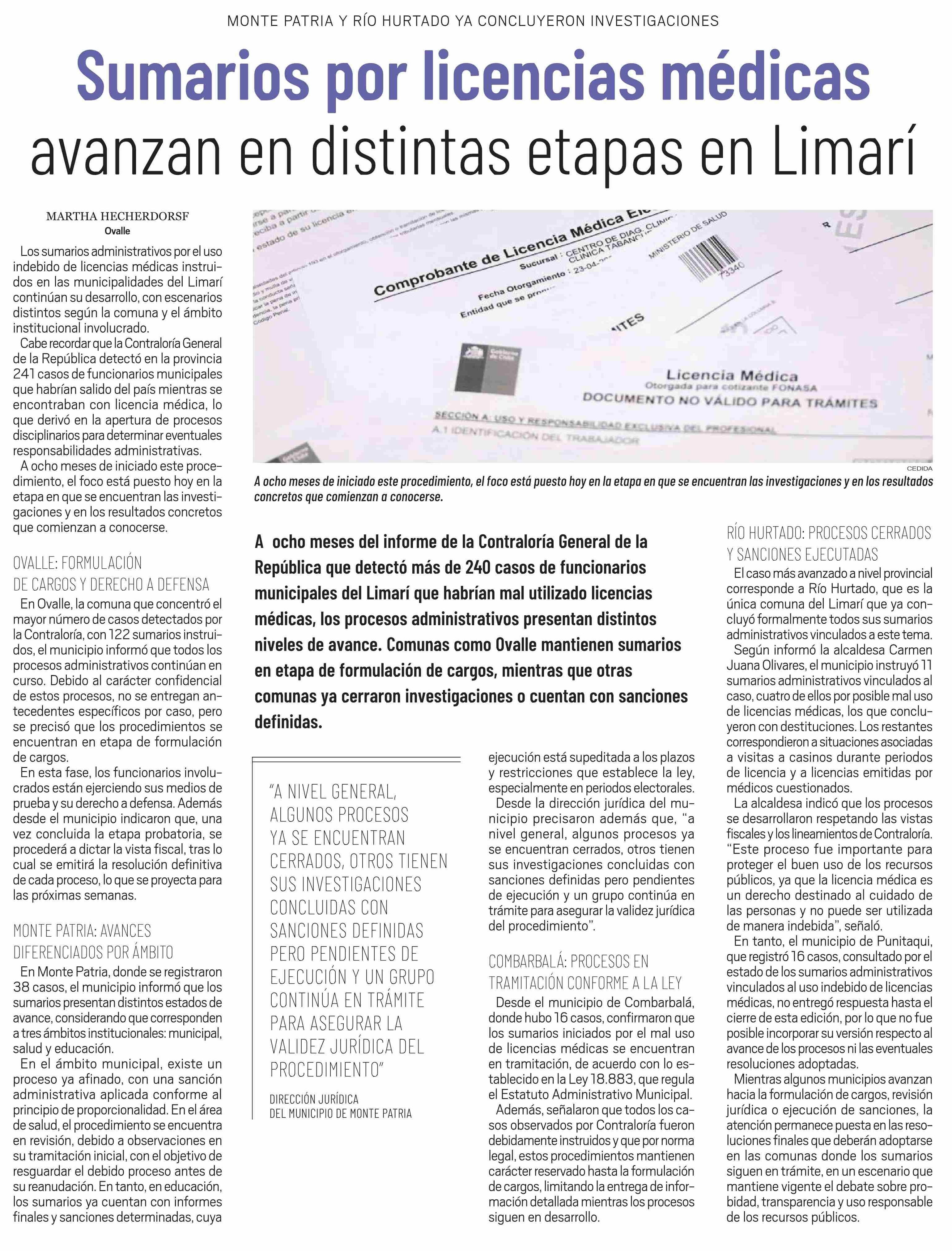 Título: Sumarios por licencias médicas avanzan en distintas etapas en Limarí
