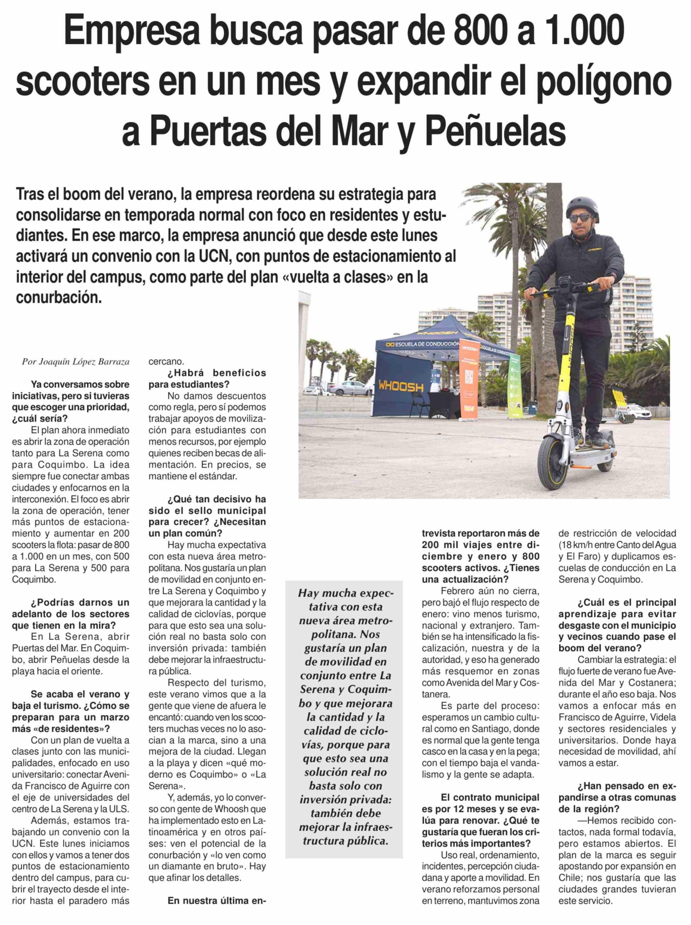 Título: Empresa busca pasar de 800 a 1.000 scooters en un mes y expandir el polígono a Puertas del Mar y Peñuelas