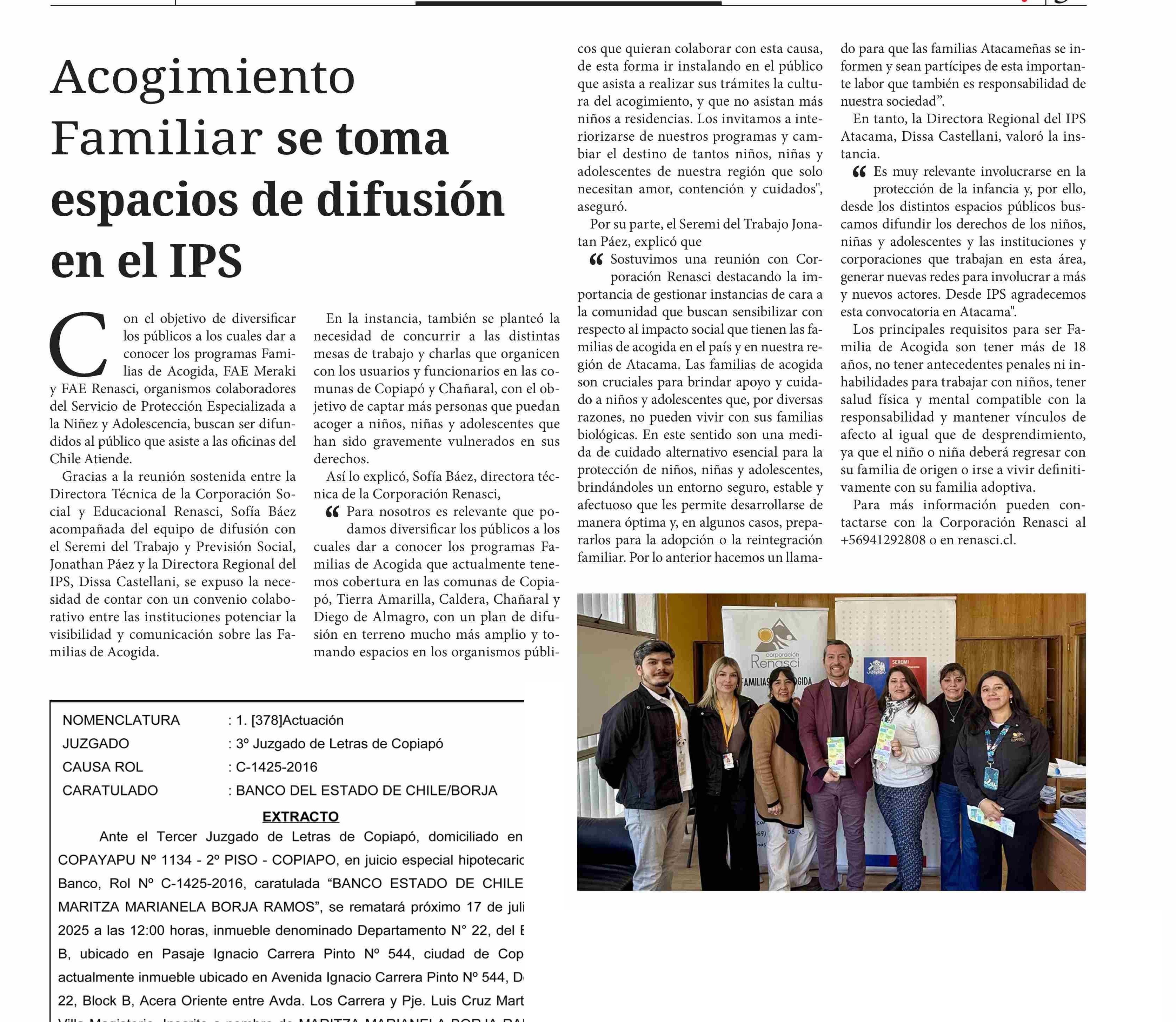 Acogimiento Familiar se toma espacios de difusión en el IPS 16-06-2025 Diario Chañarcillo |
