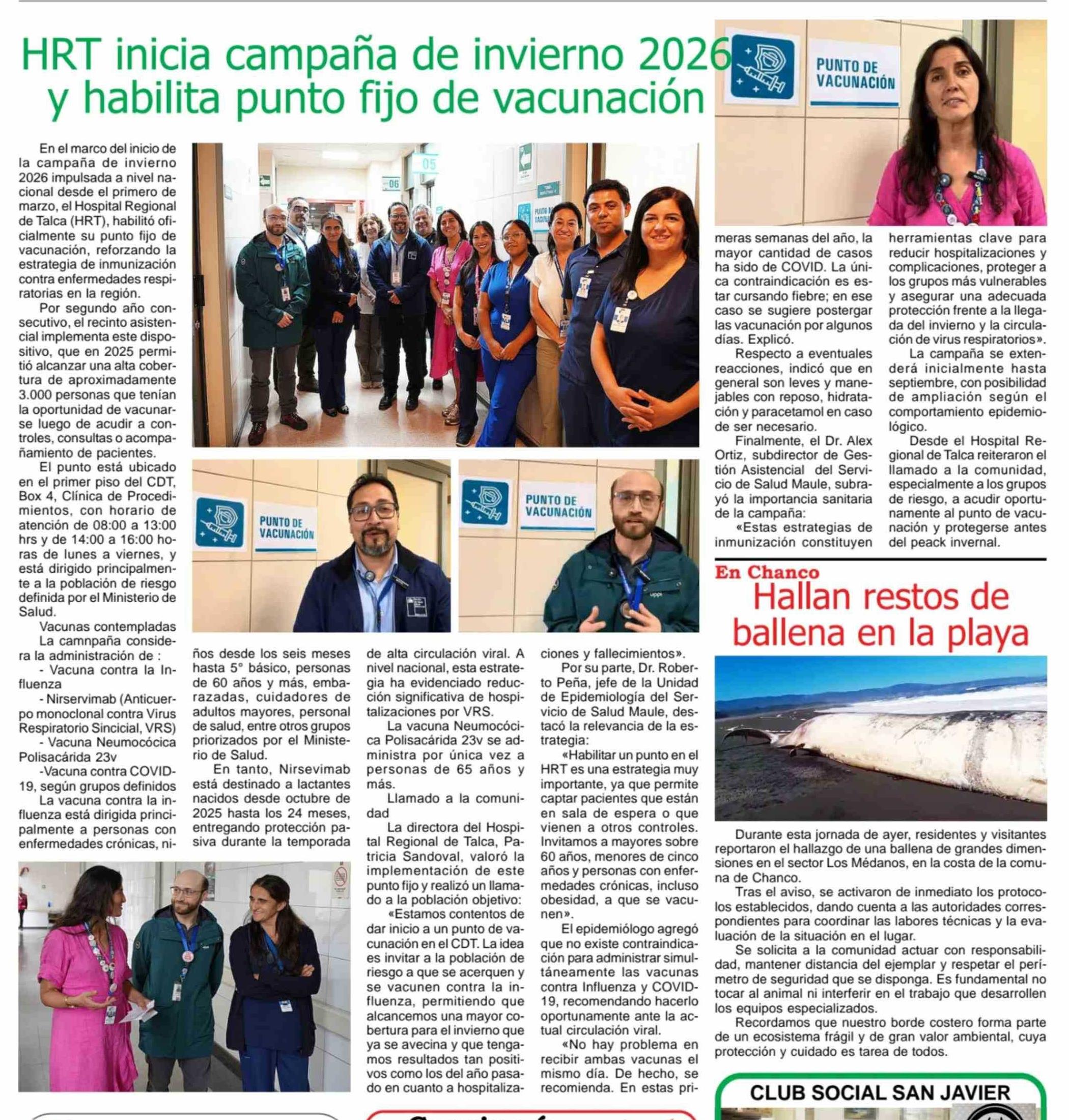 HRT inicia campaña de invierno 2026 y habilita punto fijo de vacunación 04-03-2026 Maule Hoy |