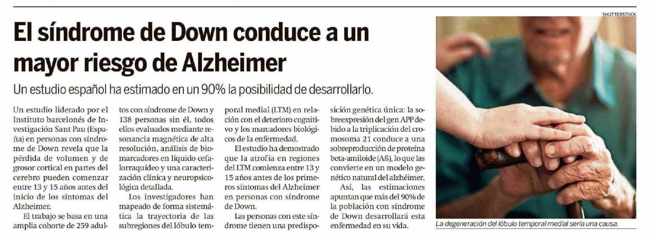 Título: El síndrome de Down conduce a un mayor riesgo de Alzheimer