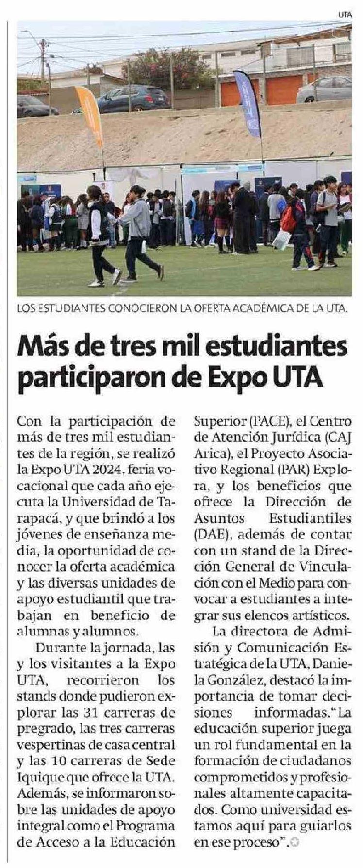 Más de tres mil estudiantes participaron de Expo UTA 10-11-2024 La Estrella de Arica |
