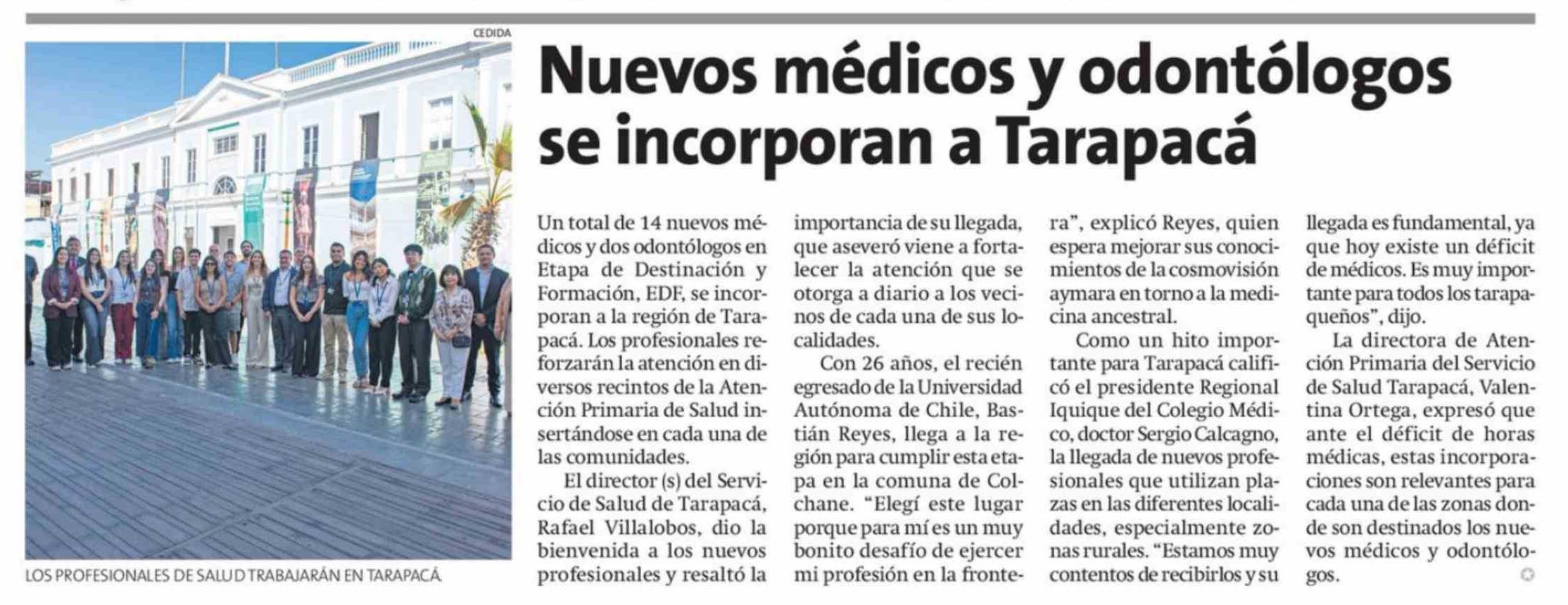 Nuevos médicos y odontólogos se incorporan a Tarapacá 08-04-2026 La Estrella de Iquique |