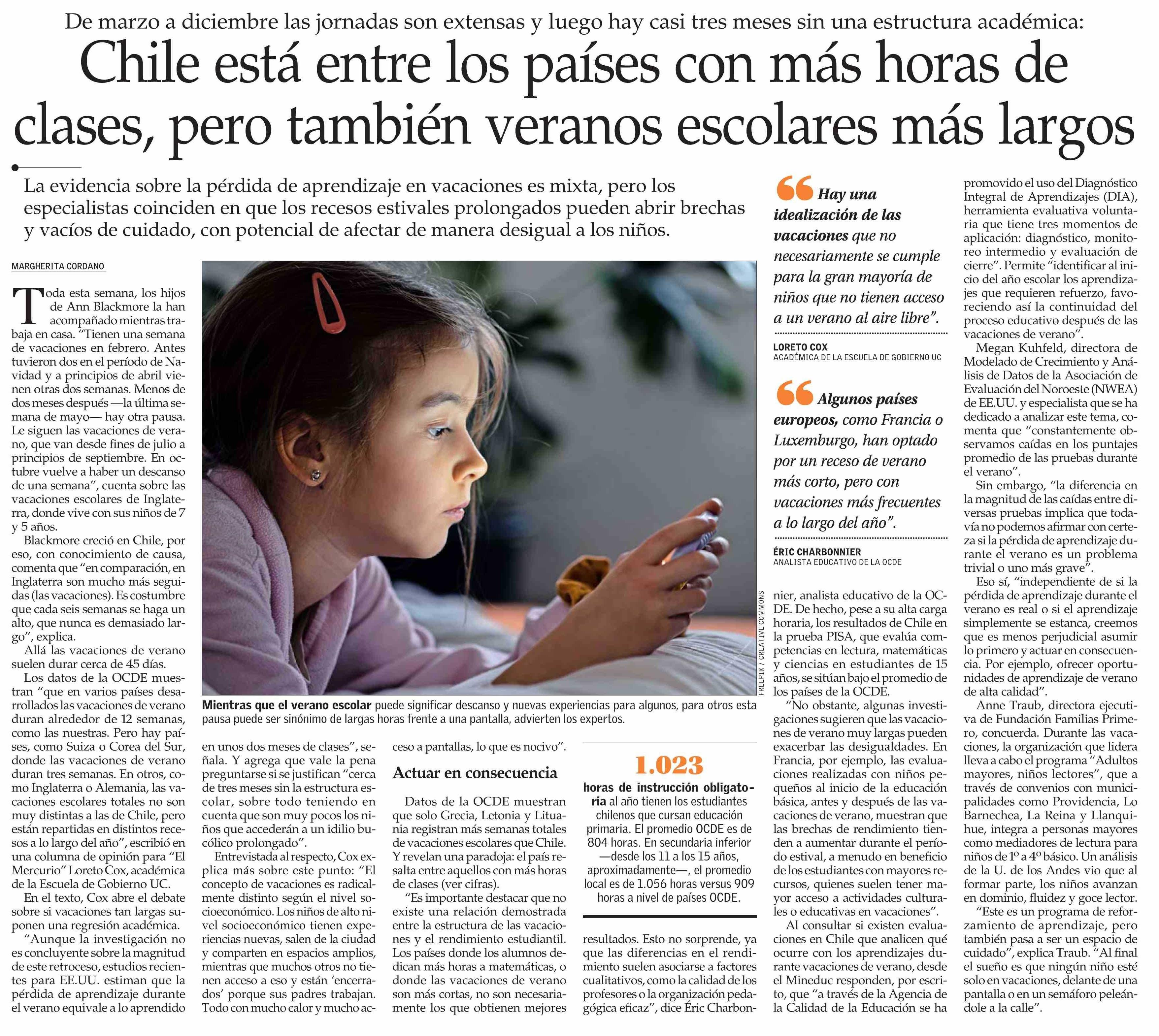 Título: Chile está entre los países con más horas de clases, pero también veranos escolares más largos