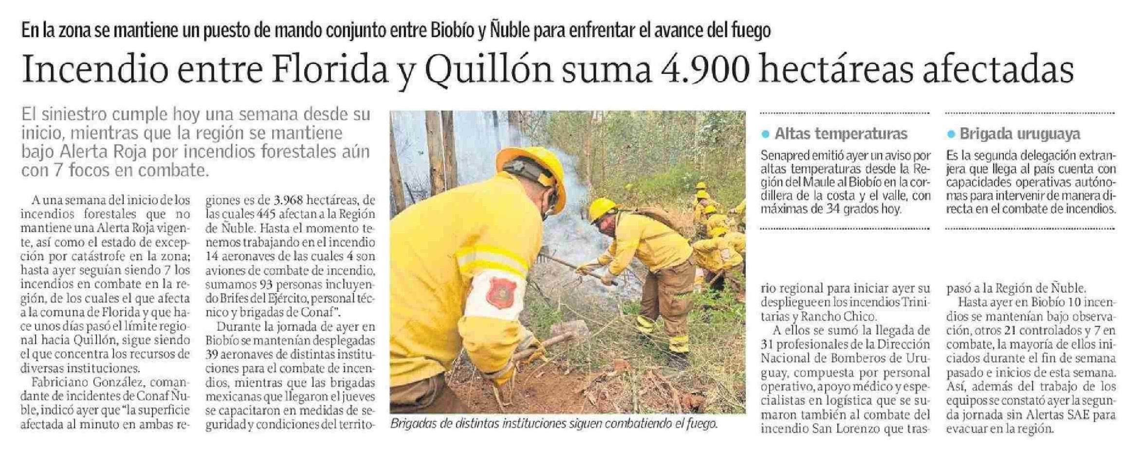 | Título: | Incendio entre Florida y Quillón suma 4.900 hectáreas afectadas |