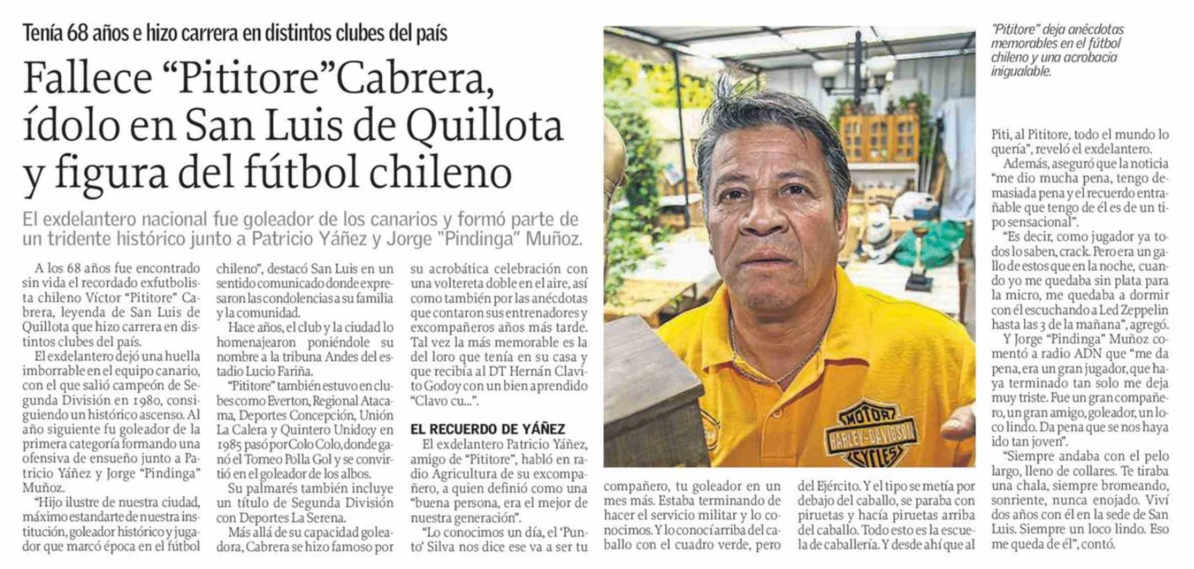 Título: Fallece "Pititore"Cabrera, ídolo en San Luis de Quillota y figura del fútbol chileno