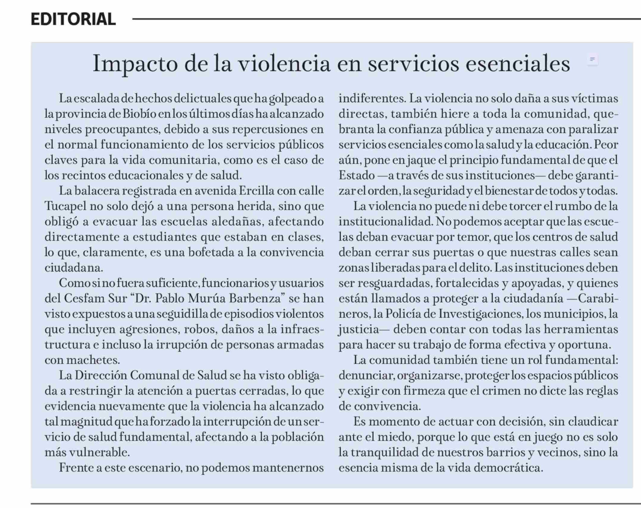 | Título: | EDITORIAL: Impacto de la violencia en servicios esenciales |