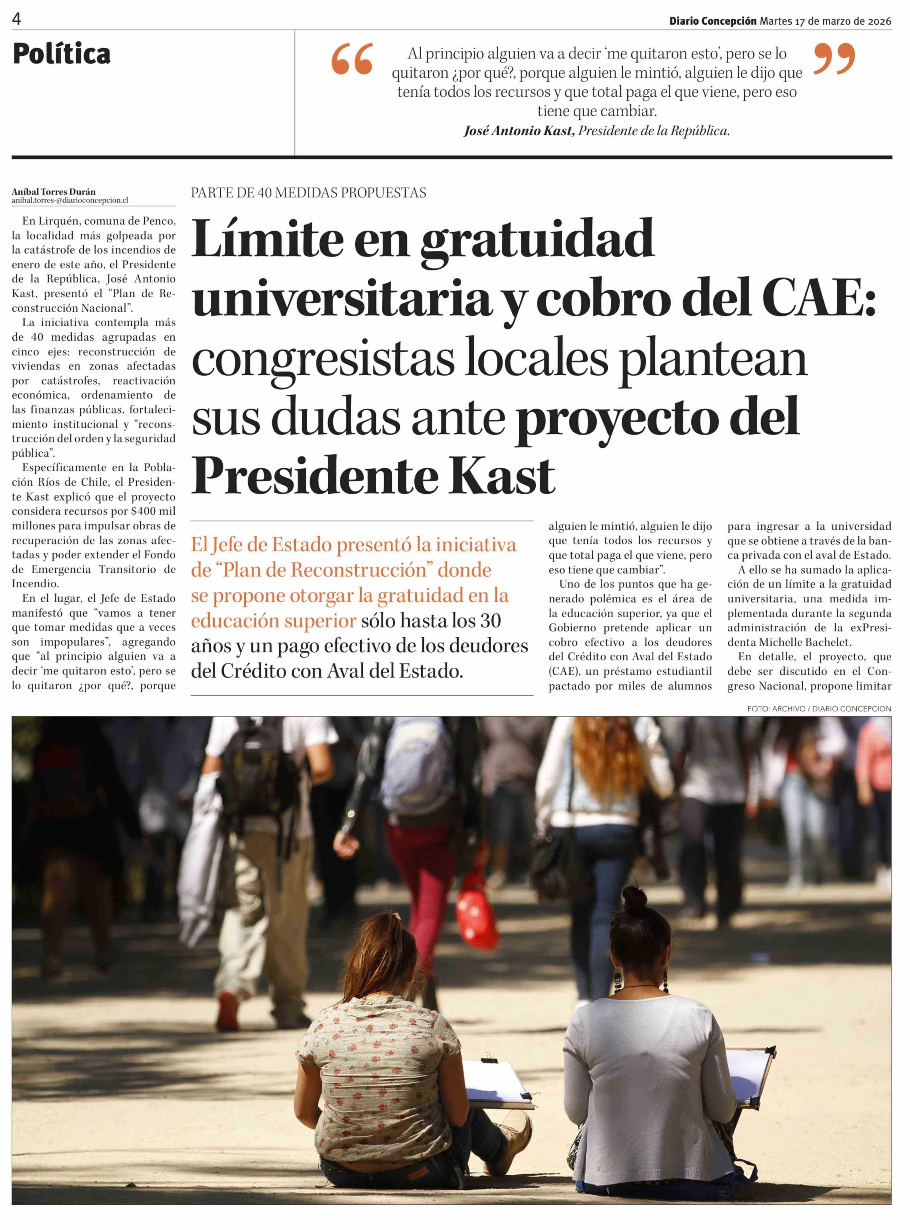 Título: Límite en gratuidad universitaria y cobro del CAE: congresistas locales plantean sus dudas ante proyecto del Presidente Kast