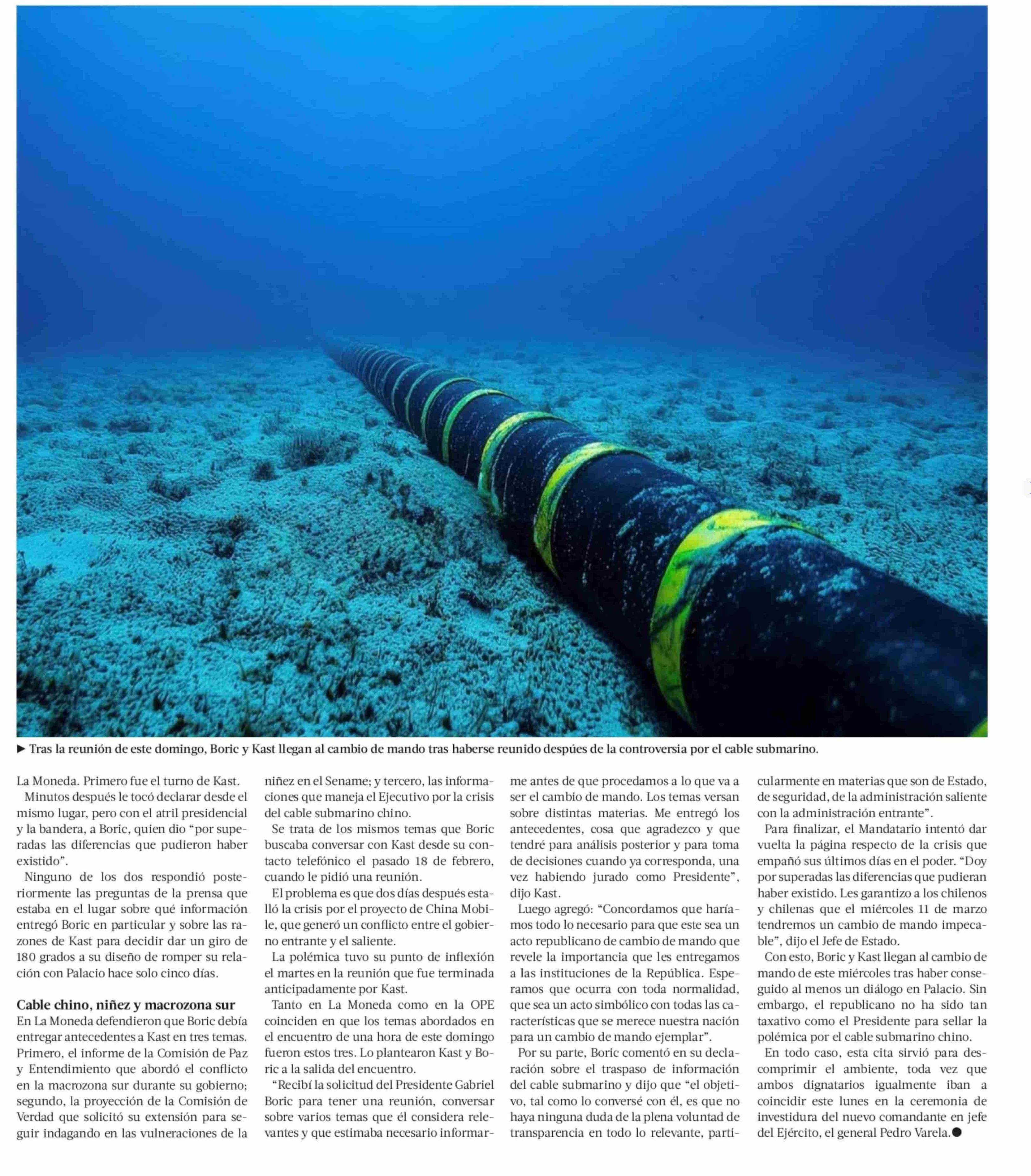Título: Boric convoca a Kast a La Moneda y da por “superado” quiebre por cable submarino chino