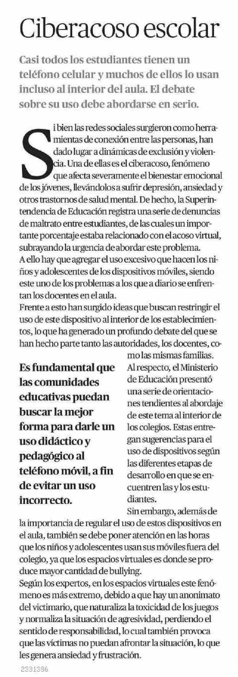 Ciberacoso escolar 10-06-2025 El Mercurio de Calama |