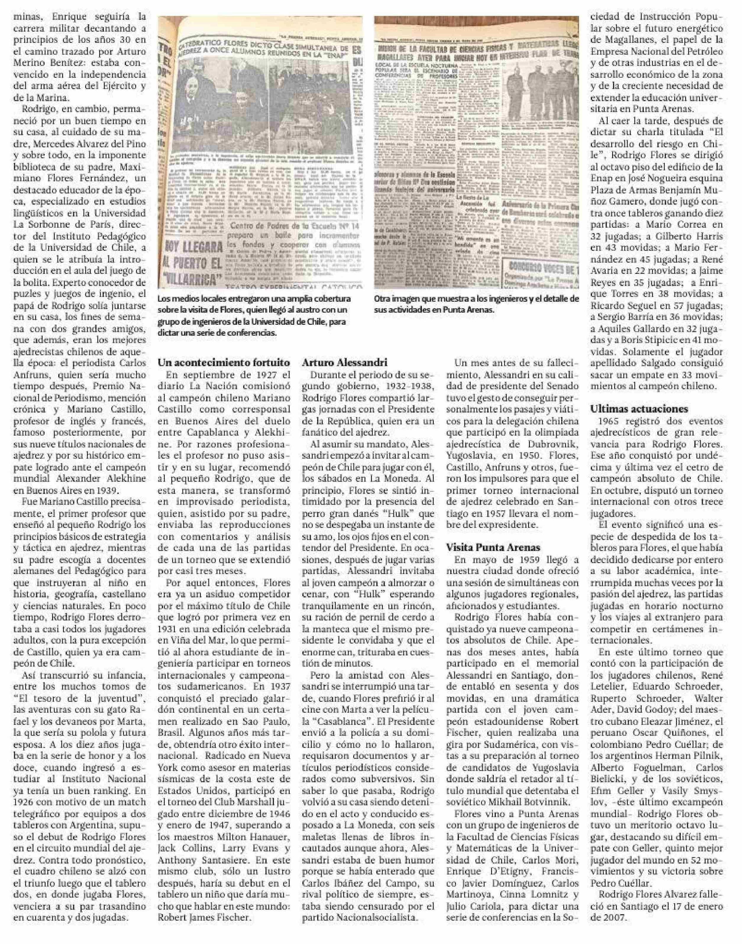 Título: Un repaso al libro "Mis años de ajedrez" de Rodrigo Flores Alvarez y su gira por Punta Arenas en 1959
