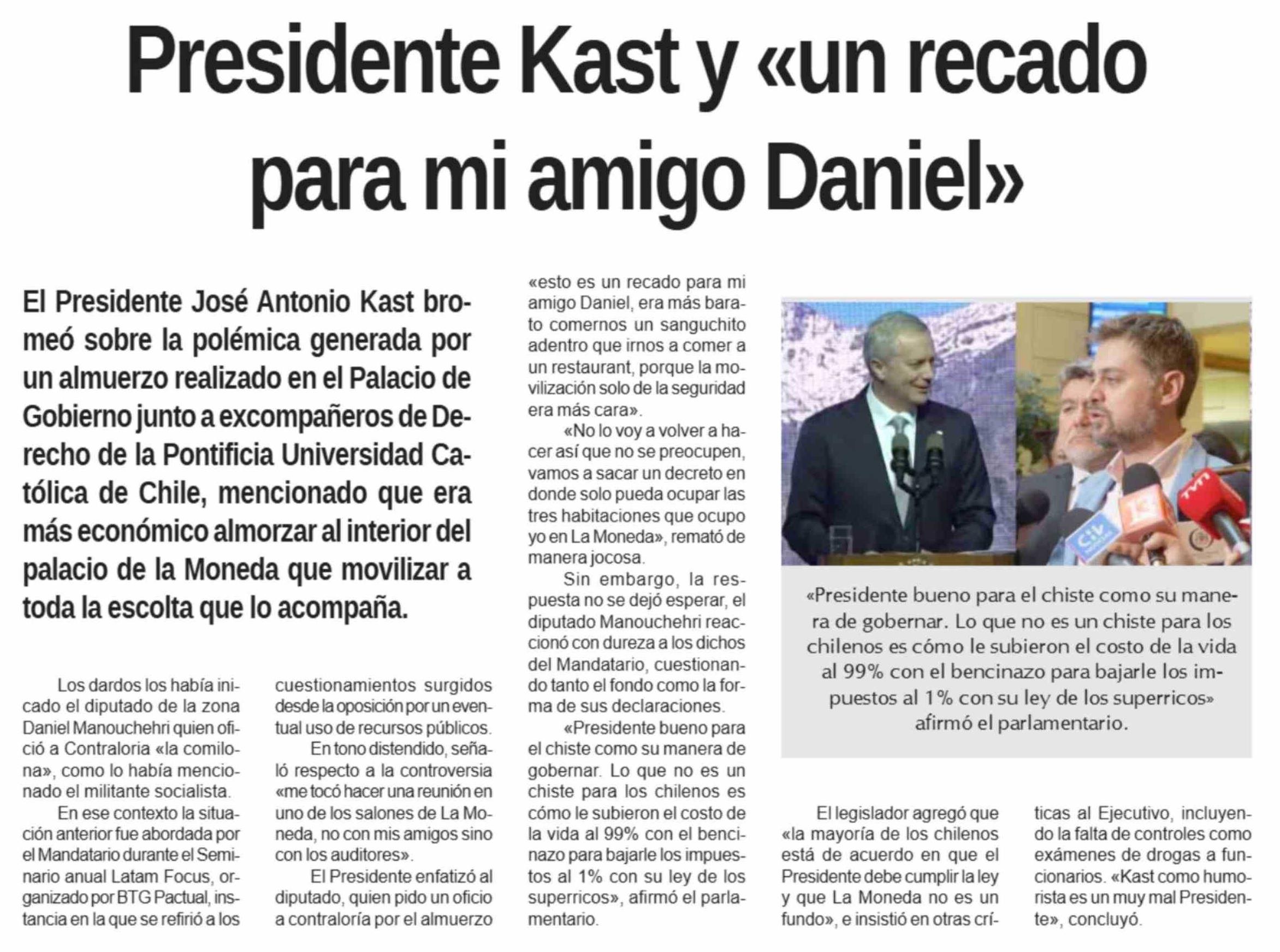| Título: | Presidente Kast y «un recado para mi amigo Daniel» |