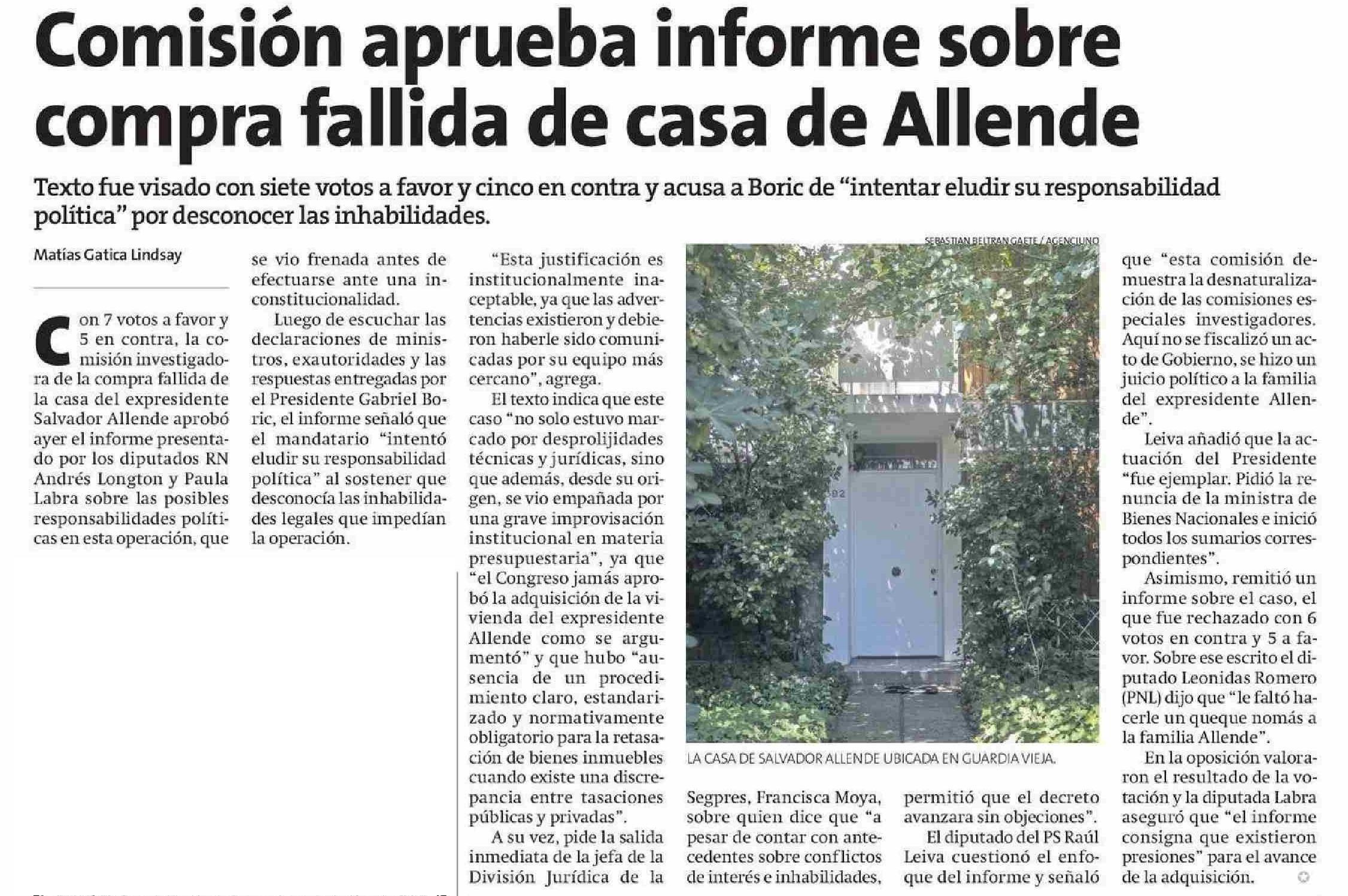 Comisión aprueba informe sobre compra fallida de casa de Allende 19-06-2025 La Estrella de Iquique |