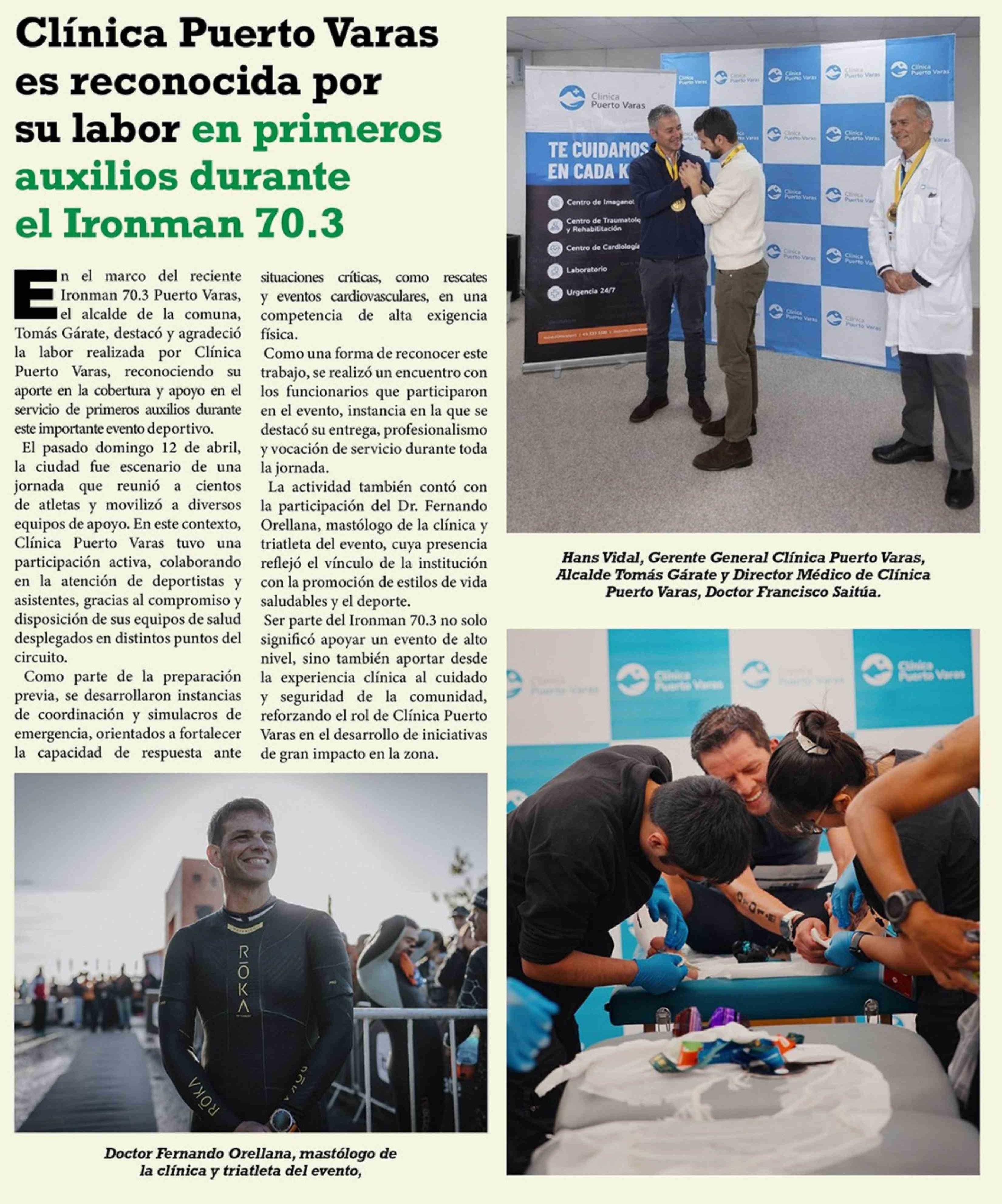 Título: Clínica Puerto Varas es reconocida por su labor en primeros auxilios durante el Ironman 70.3