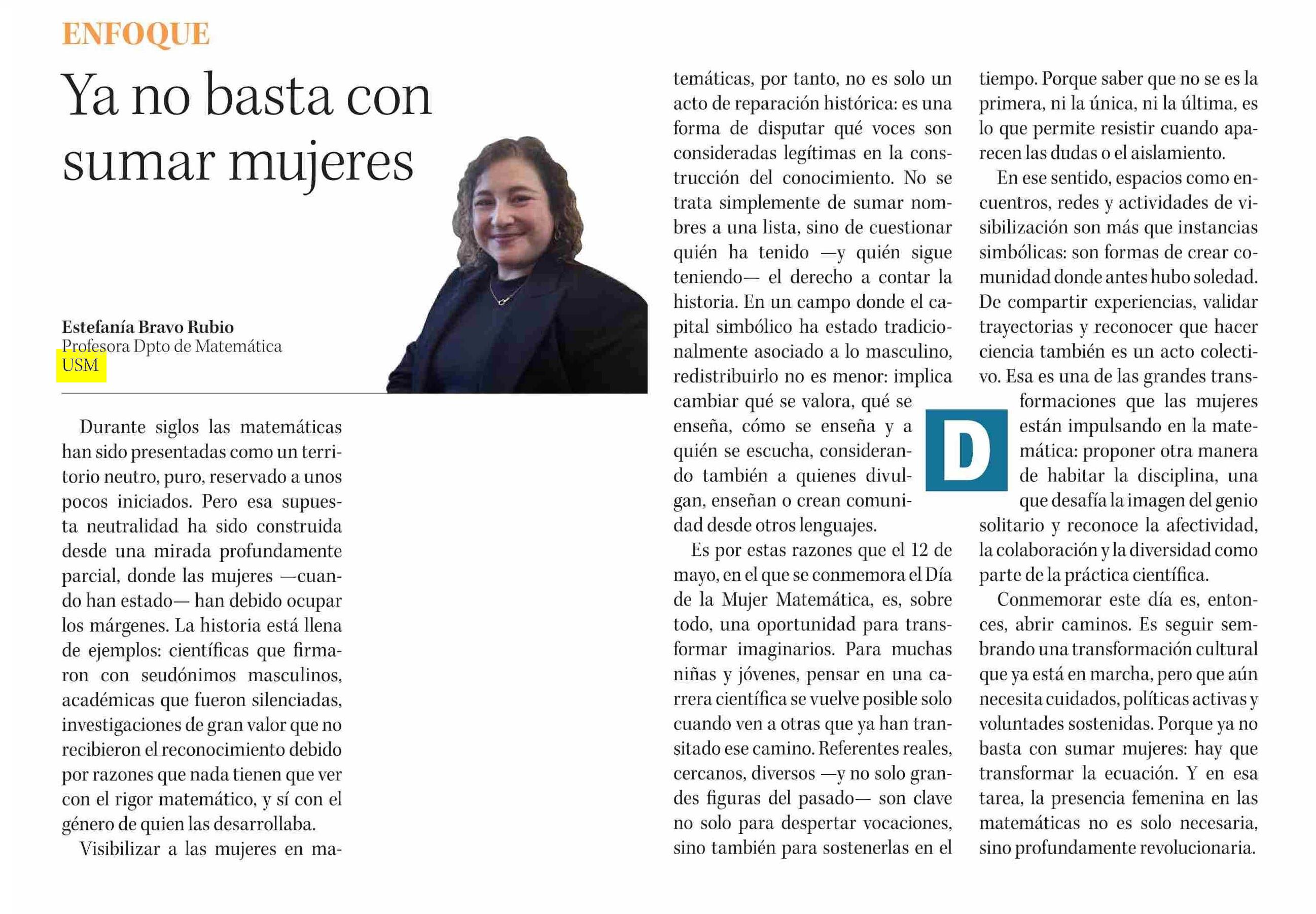 COLUMNAS DE OPINIÓN: Ya no basta con sumar mujeres 28-05-2025 Diario Concepción |