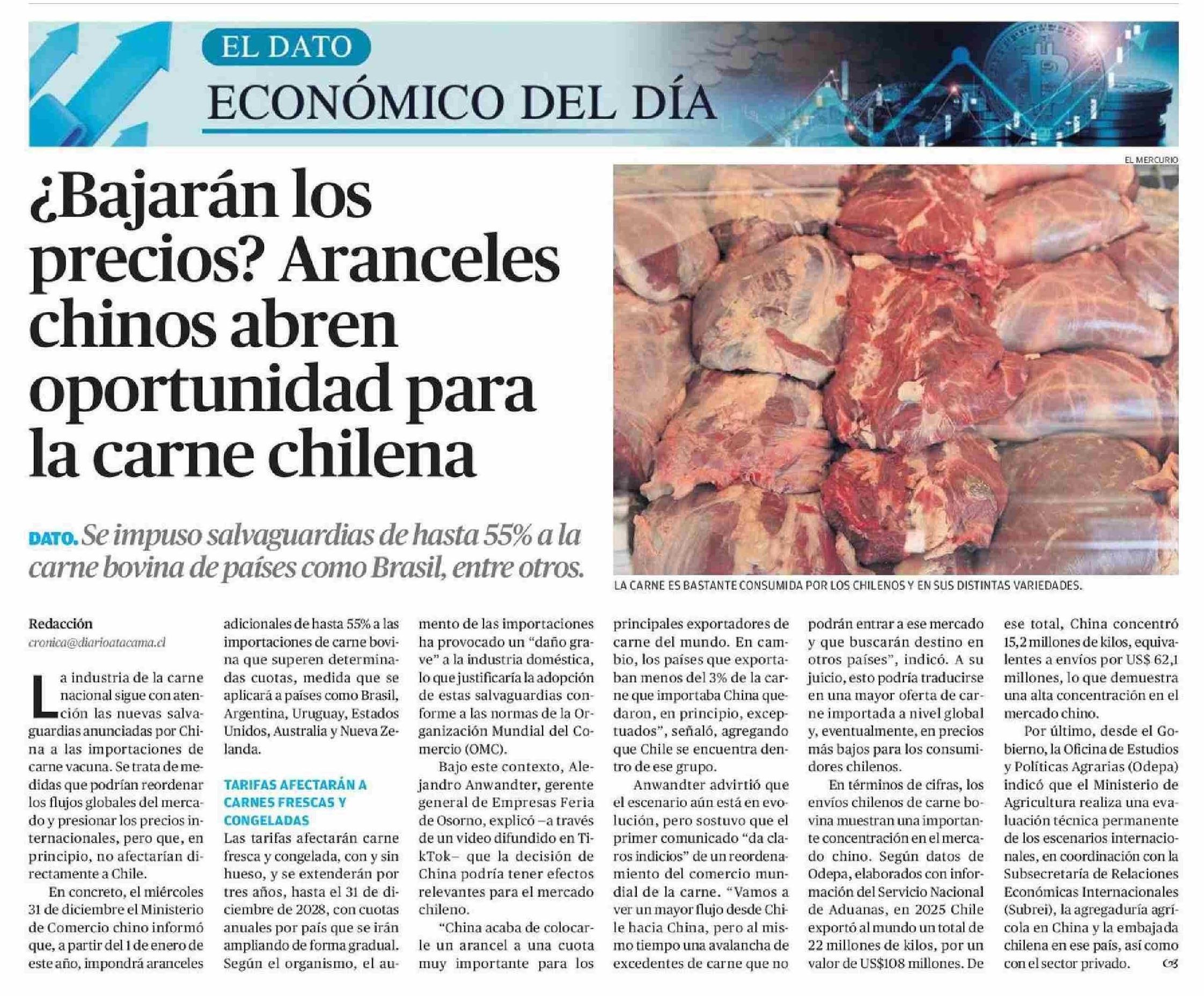 ¿Bajarán los precios? Aranceles chinos abren oportunidad para la carne chilena 12-01-2026 El Diario de Atacama |