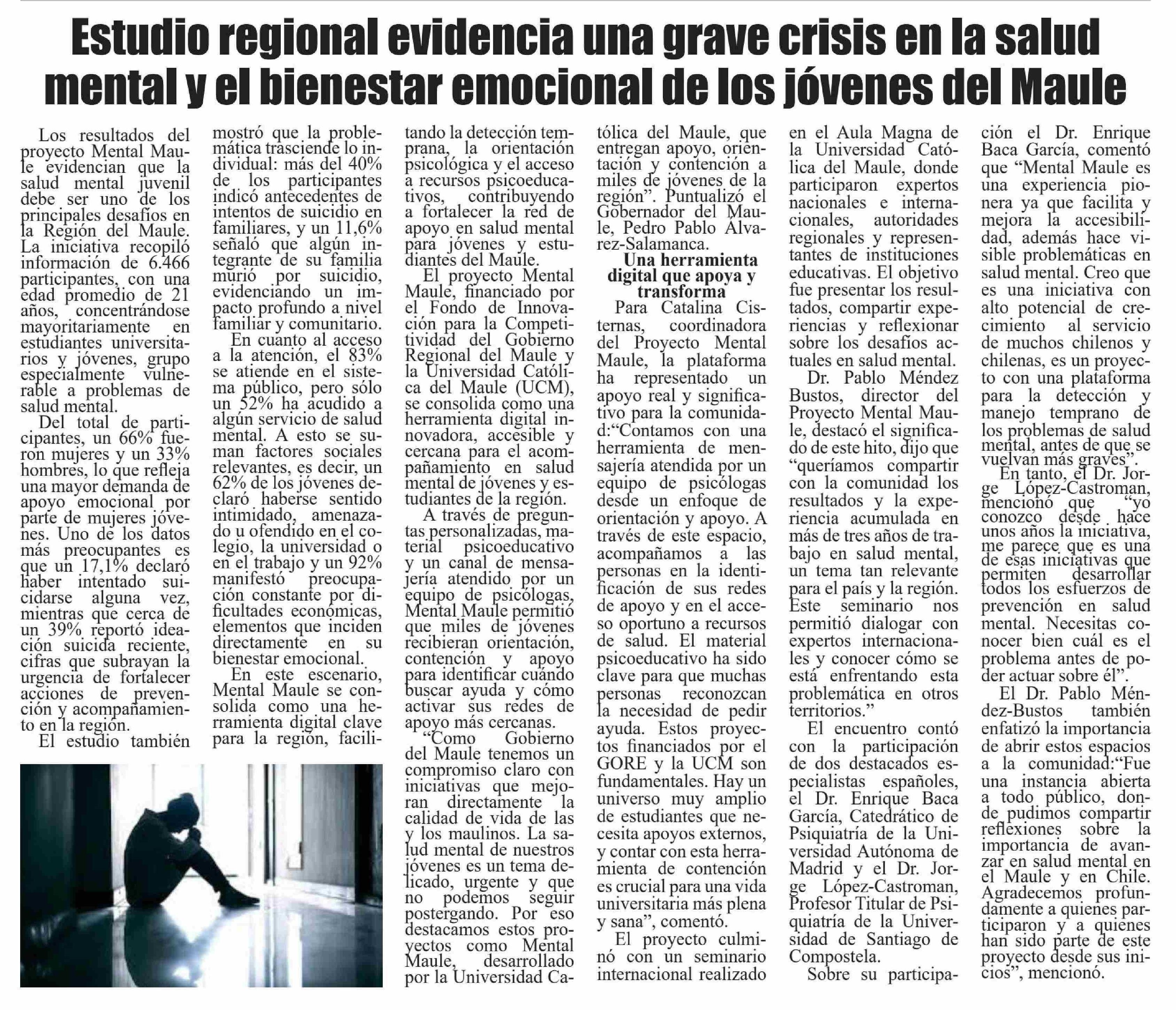 | Título: | Estudio regional evidencia una grave crisis en la salud mental y el bienestar emocional de los jóvenes del Maule |