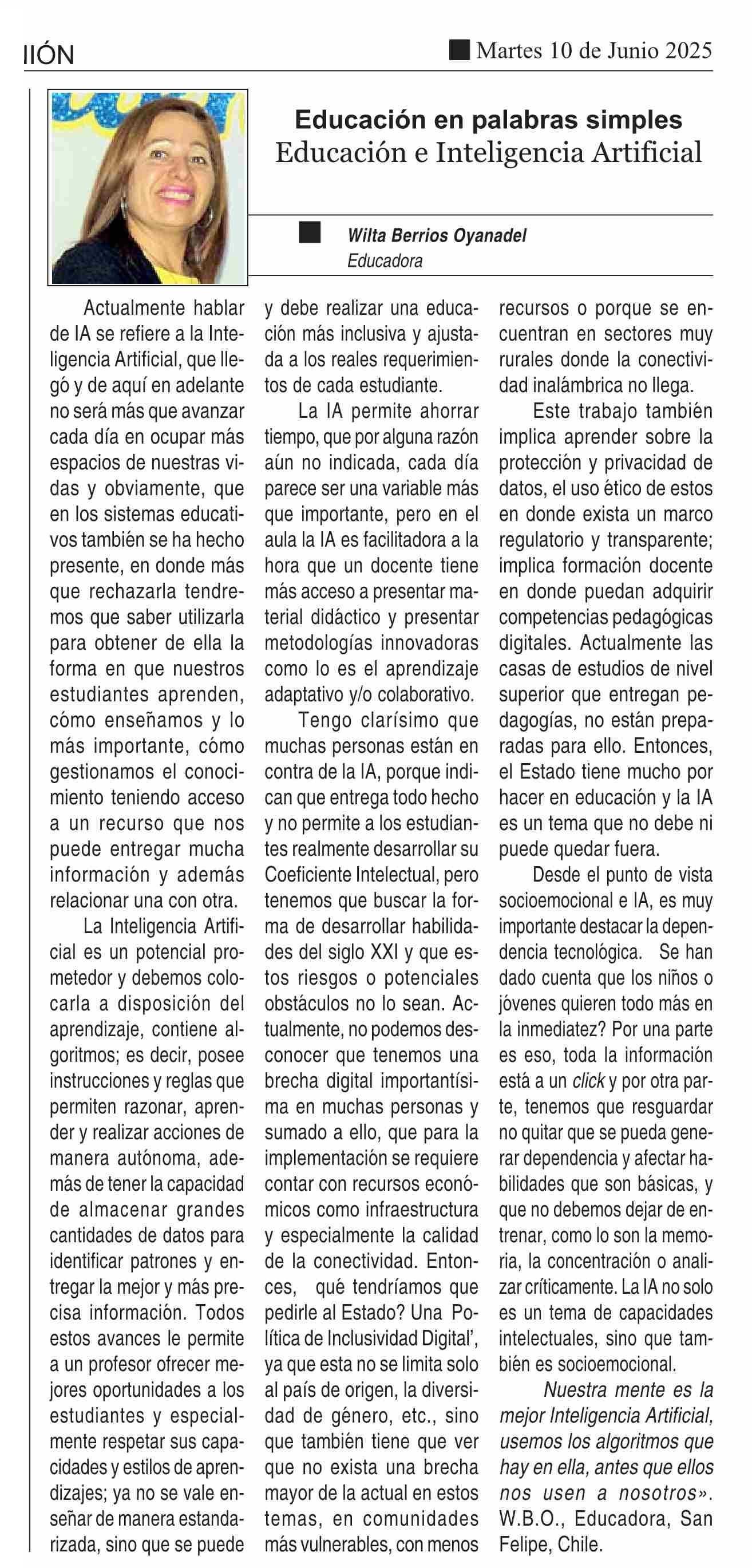 Título: COLUMNAS DE OPINIÓN: Educación e Inteligencia Artificial