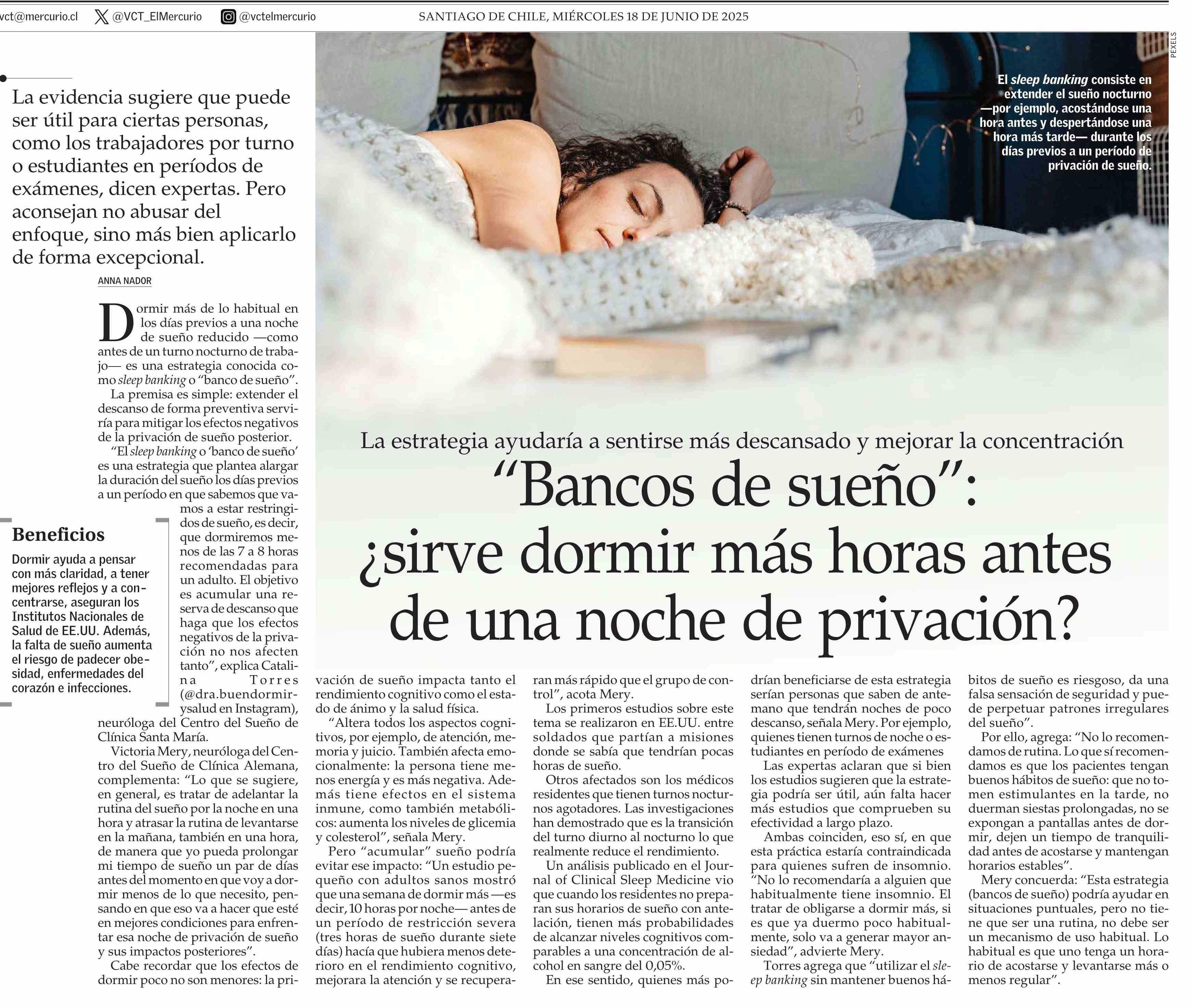 “Bancos de sueño”: ¿sirve dormir más horas antes de una noche de privación? 18-06-2025 El Mercurio |