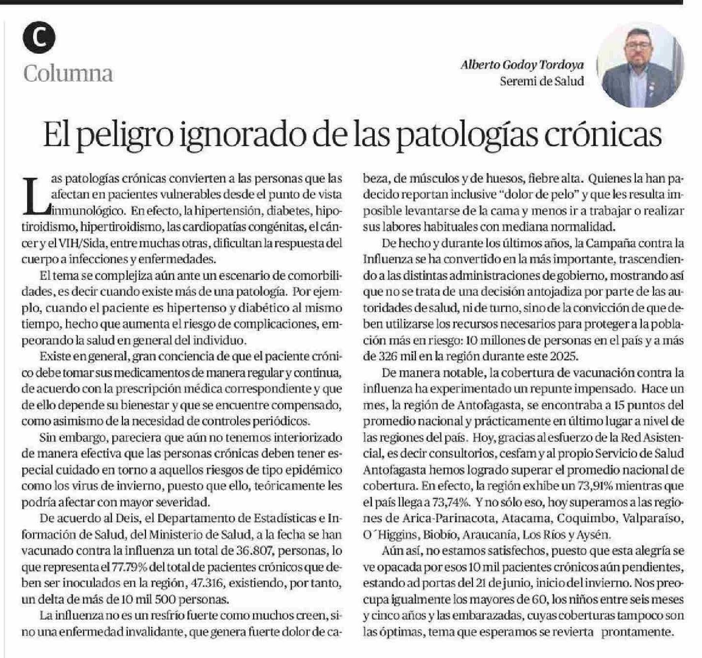 El peligro ignorado de las patologías crónicas 13-06-2025 El Mercurio de Calama |