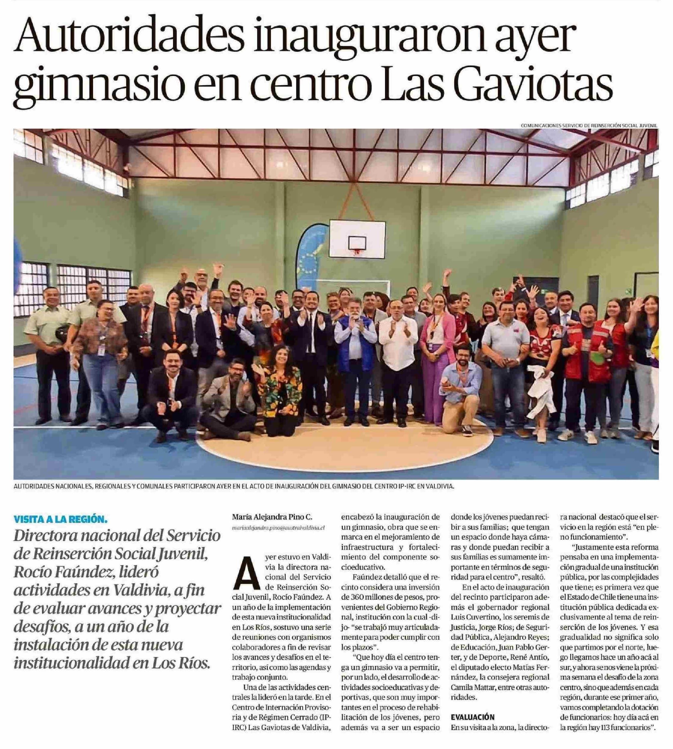Autoridades inauguraron ayer gimnasio en centro Las Gaviotas 07-01-2026 Diario Austral Región de Los Ríos |