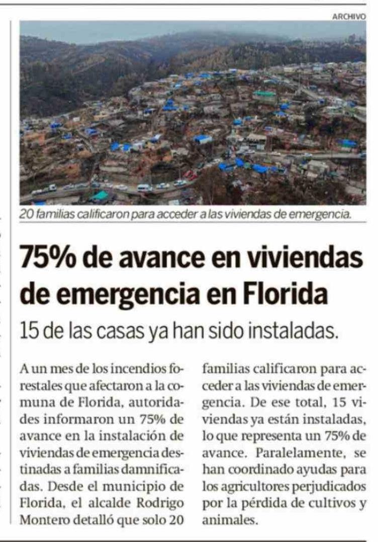 Título: 75% De avance en viviendas de emergencia en Florida