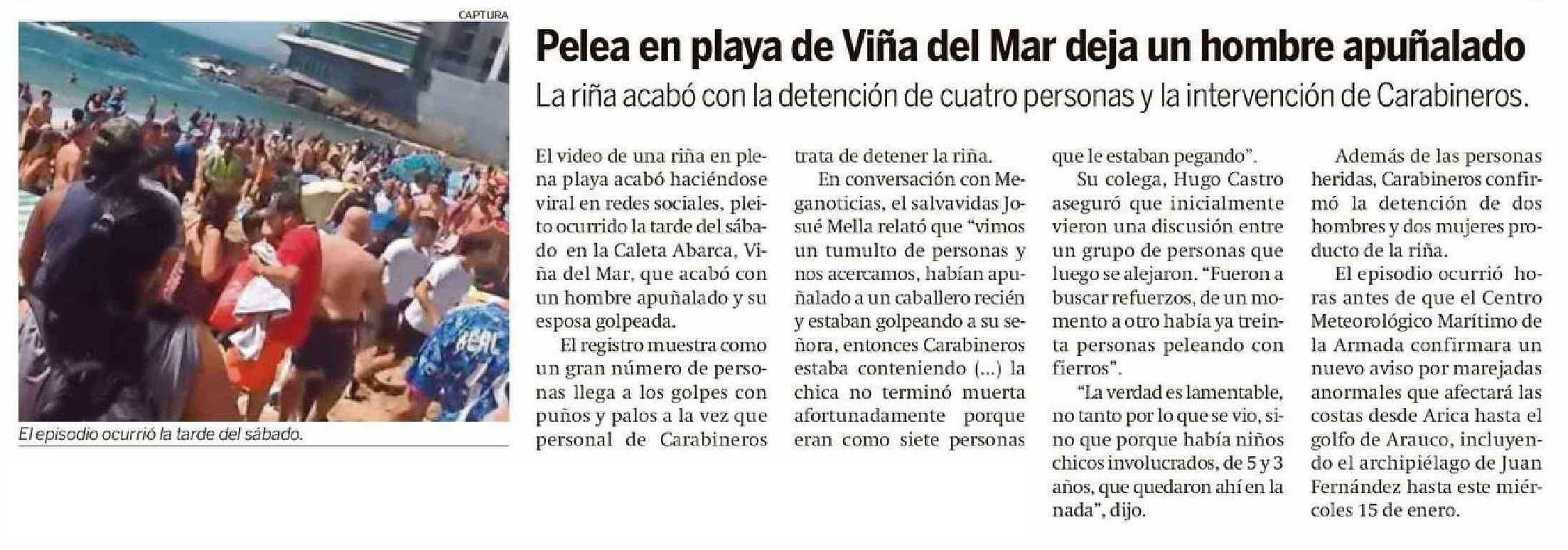 | Título: | Pelea en playa de Viña del Mar deja un hombre apuñalado |