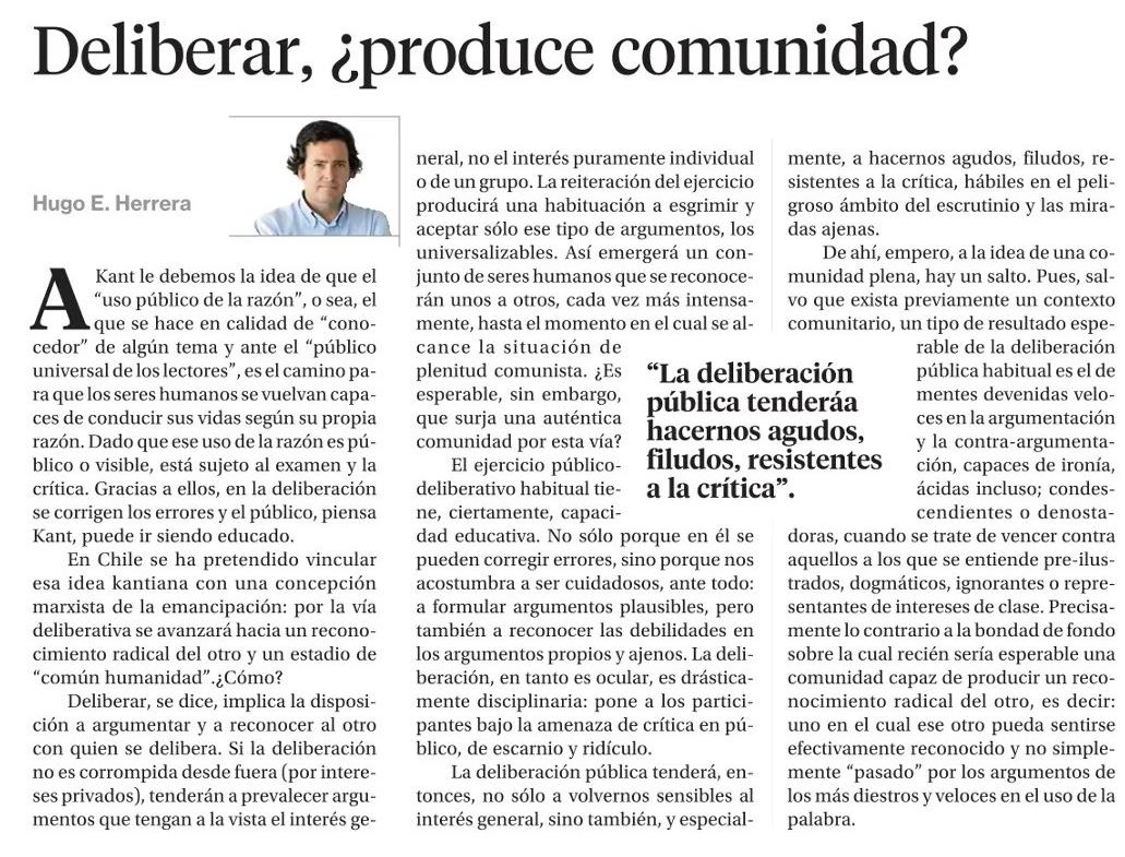 Deliberar, ¿produce comunidad? 24-01-2023 La Segunda |
